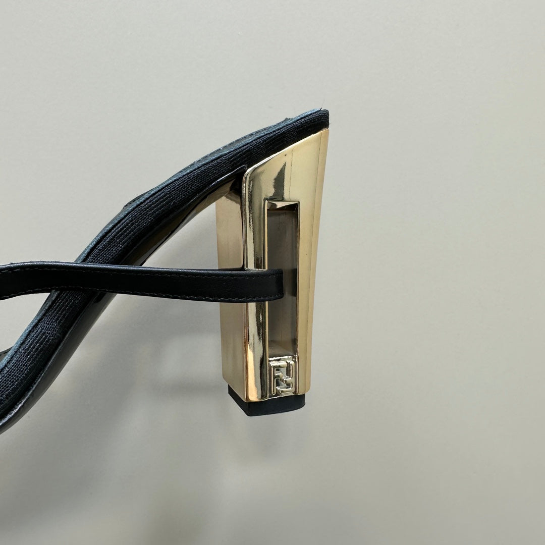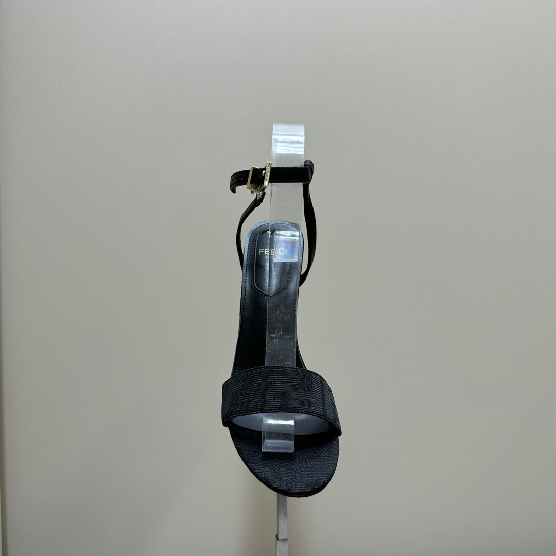 FENDI DELFINA HIGH-HEELED 10 CM SANDAL IN BLACK FF CANVAS