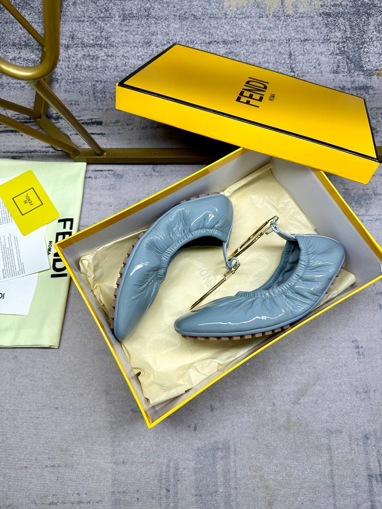 FENDI FILO BALLET IN SAPHIRE BLUE LAMBSKIN WITH GOLD HARDWARE