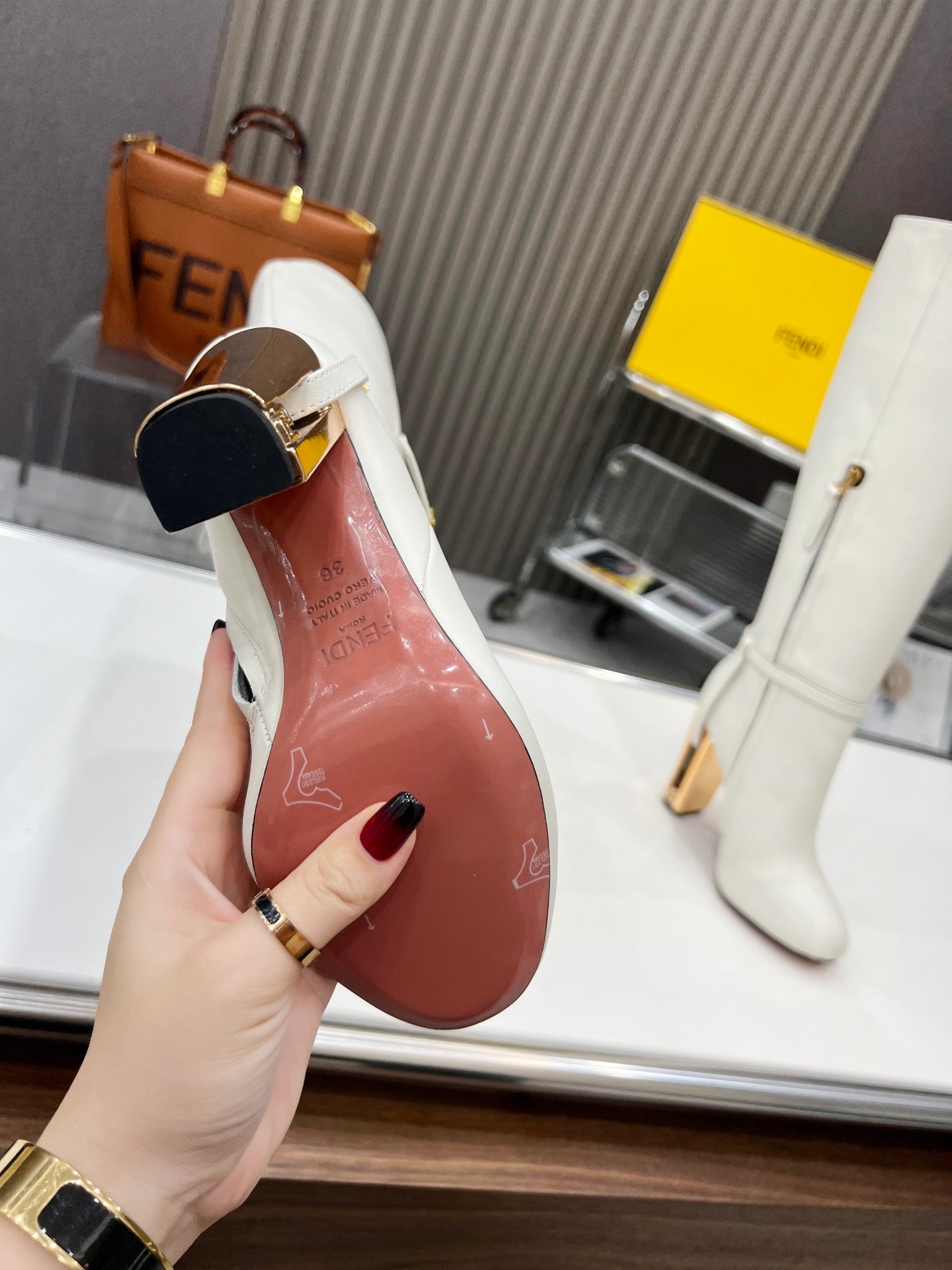FENDI knee boots high heel white cowhide 521210