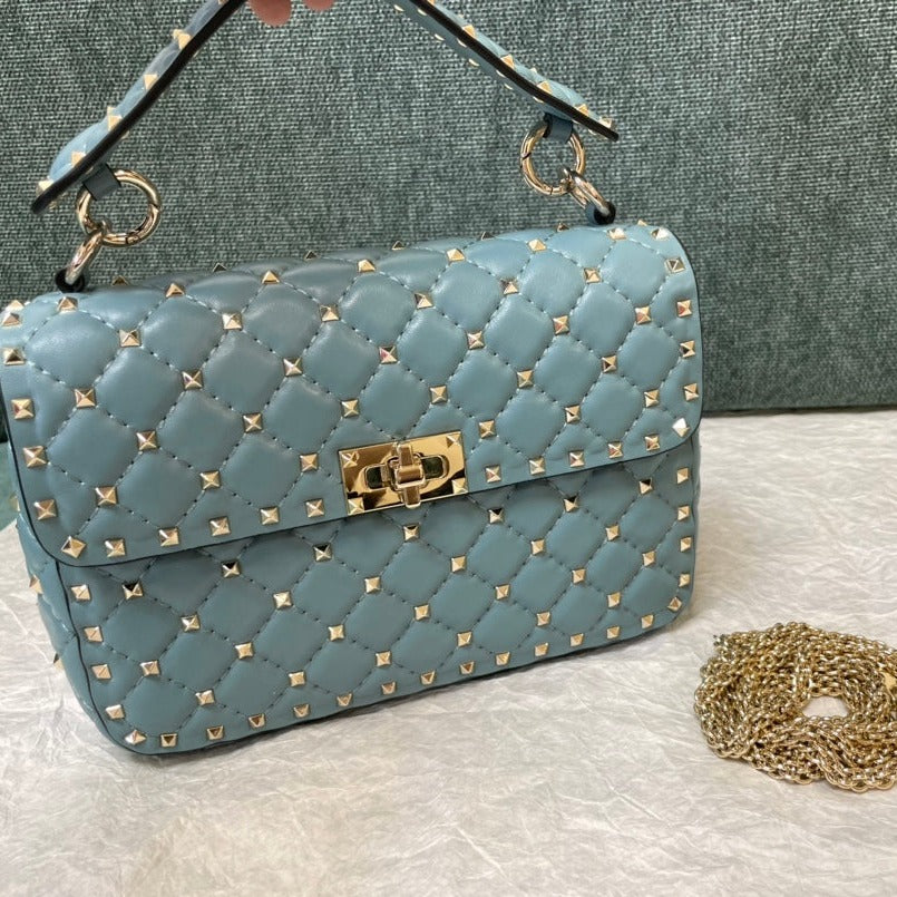 garavani rockstud spike medium 24cm azure lambskin