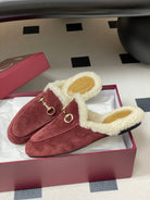 GG horsebit flat mules burgundy suede and wool 534706