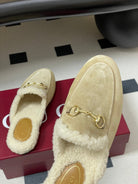 GG horsebit flat mules ivory suede and wool 534709