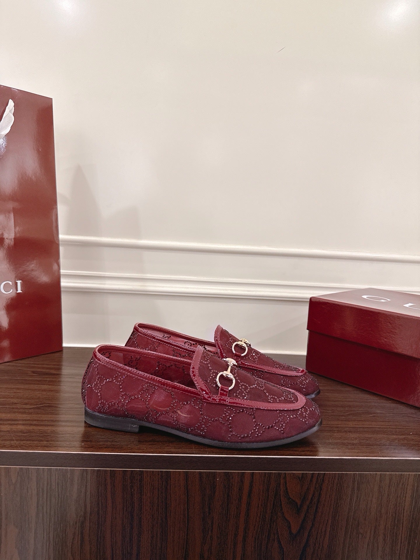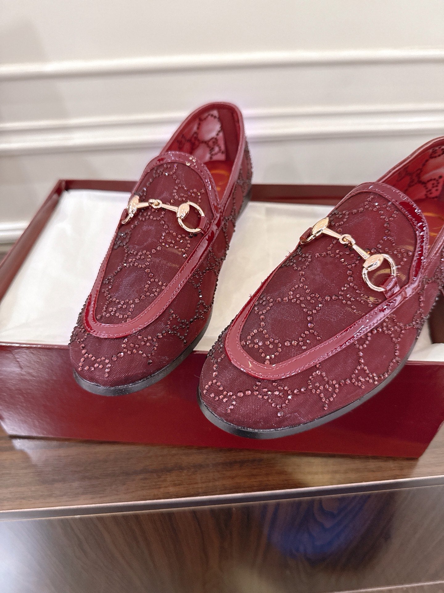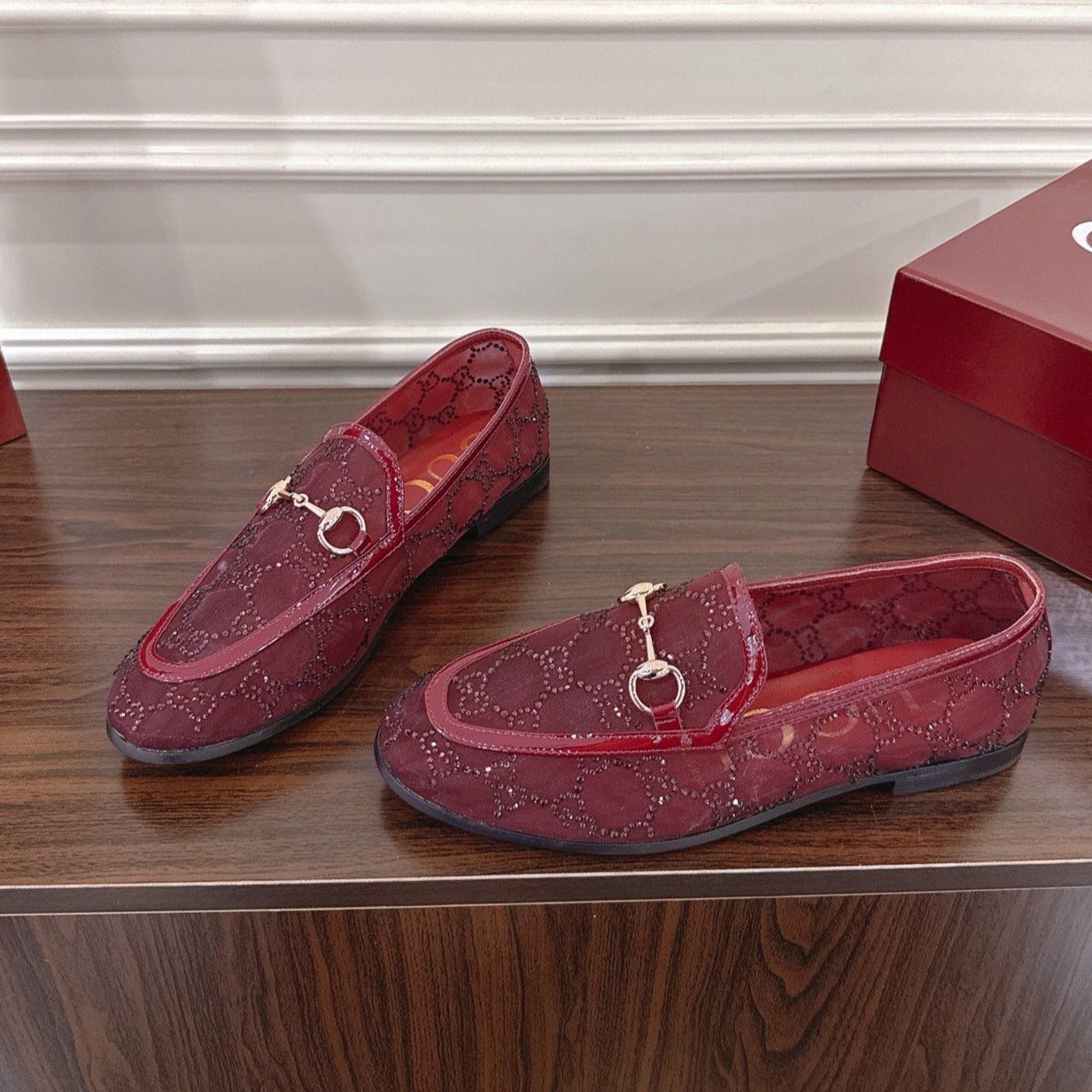 GG Jordaan Loafer Dark Red Mesh With Crystal