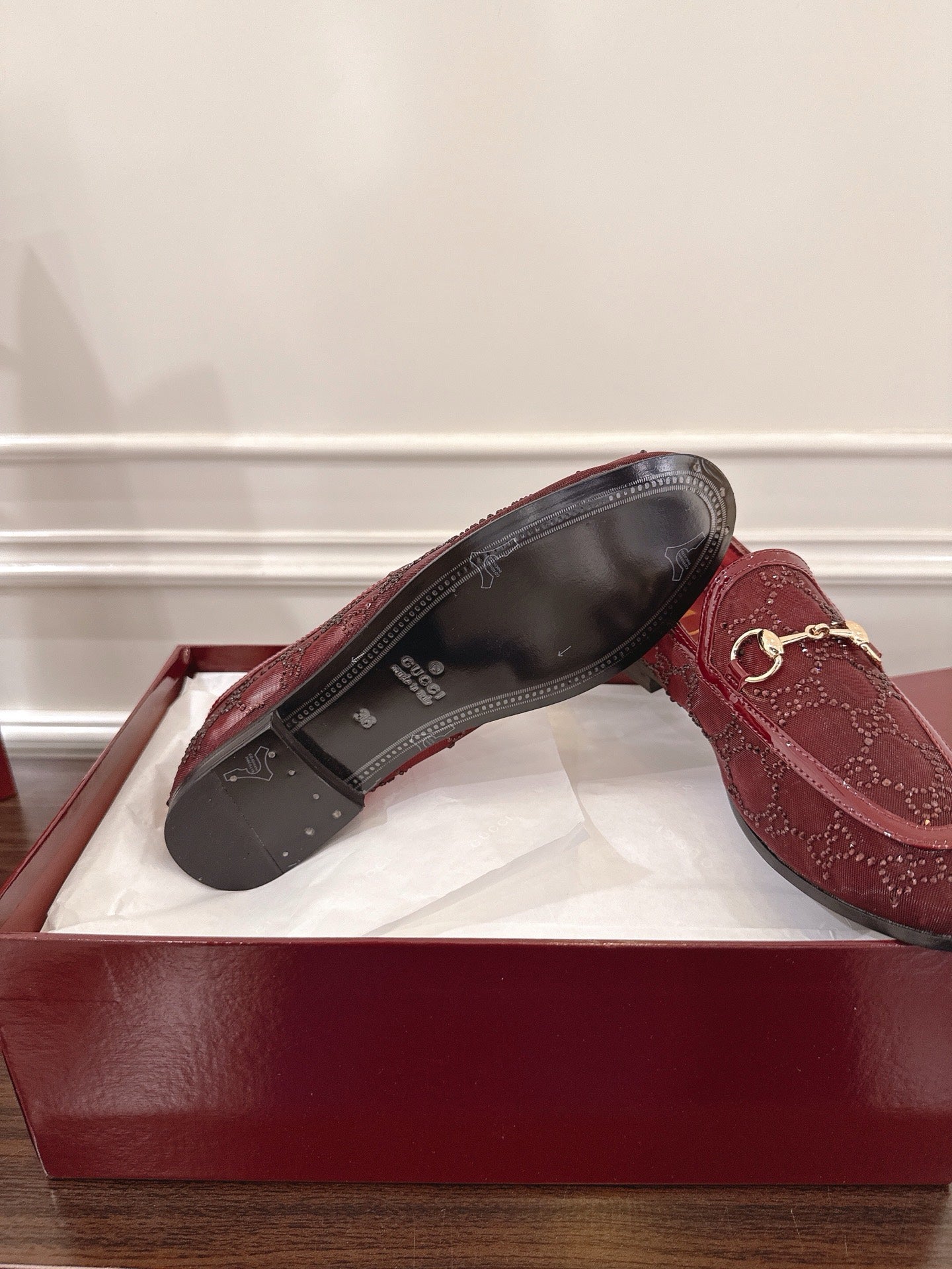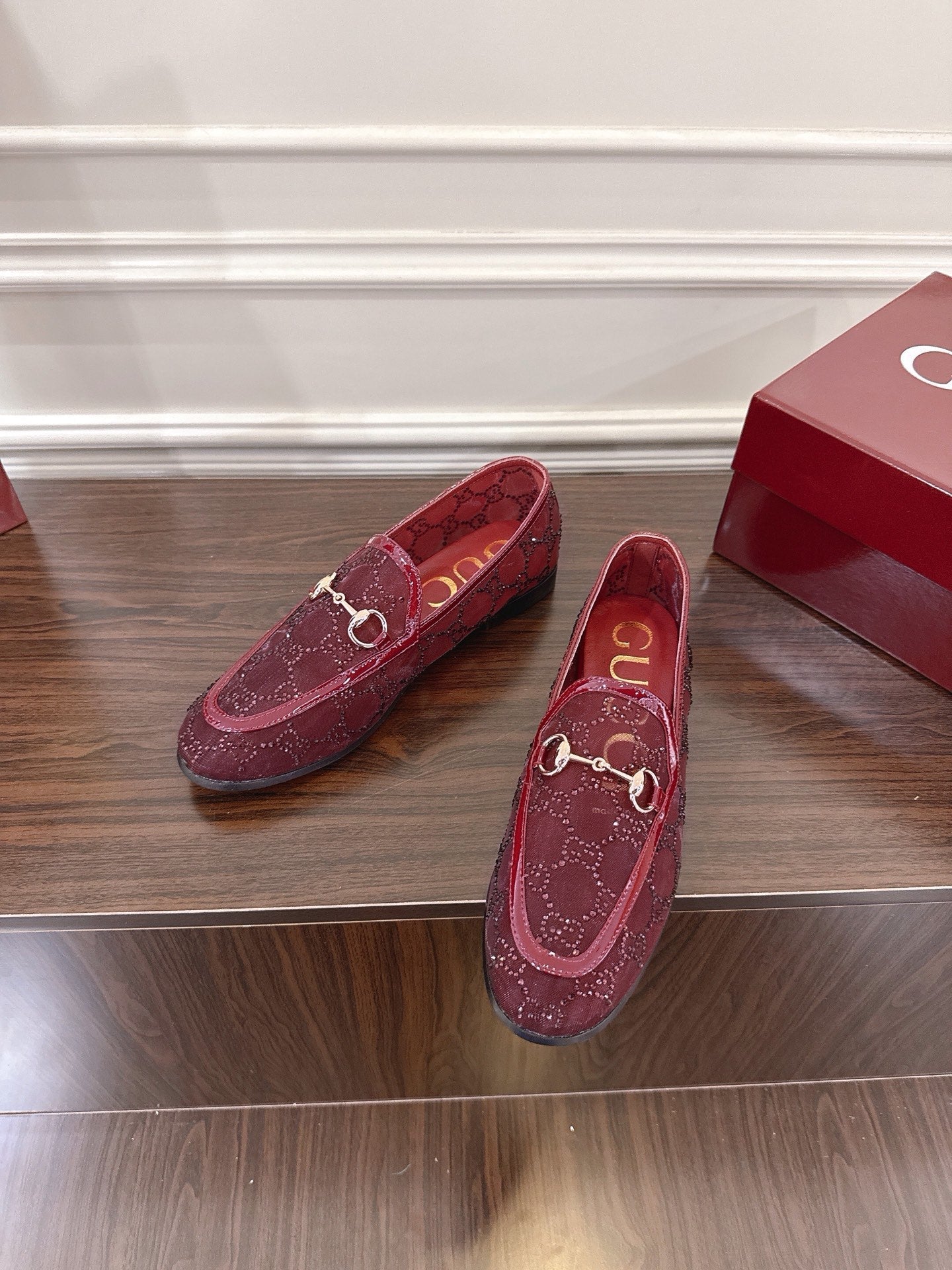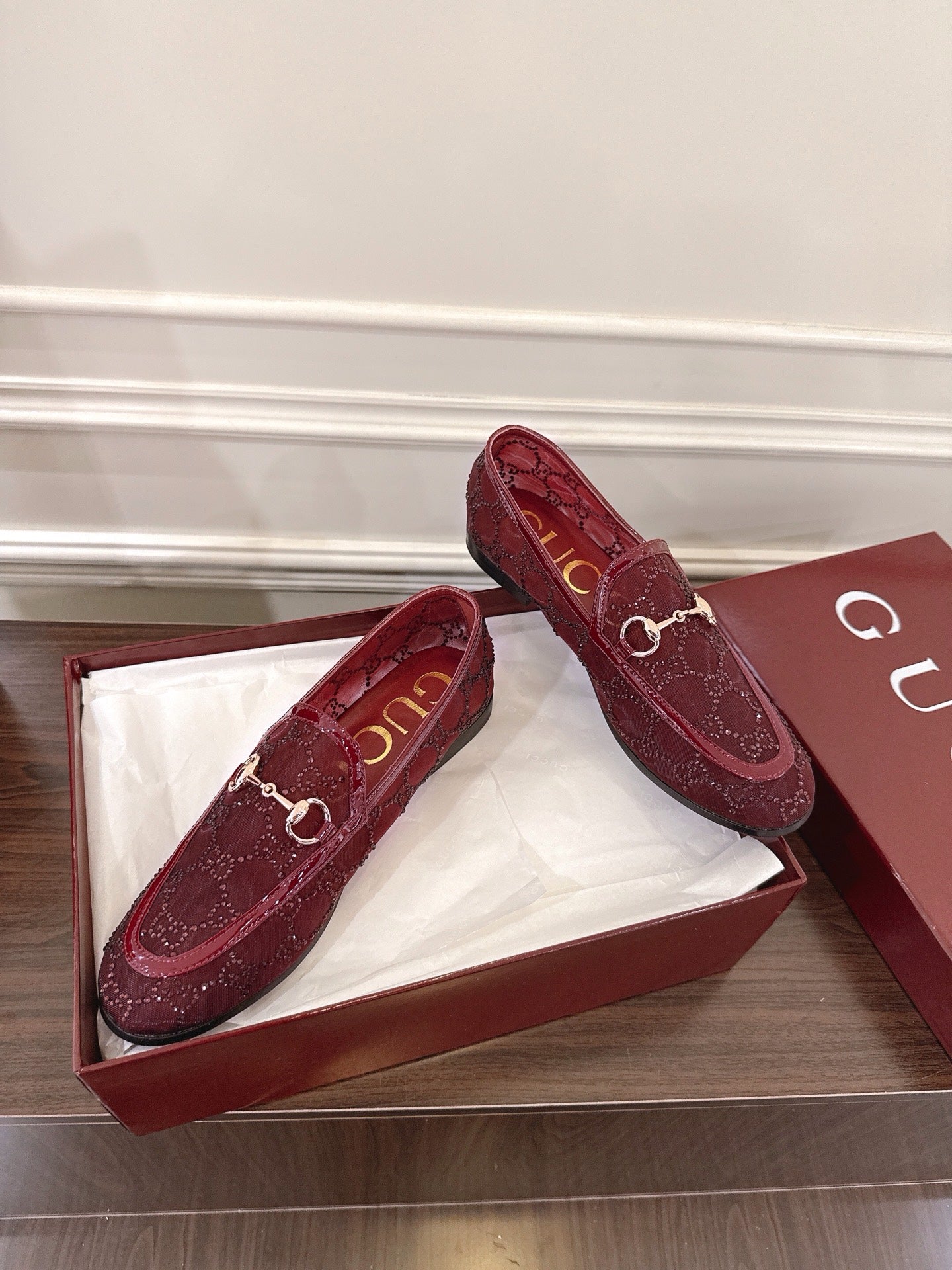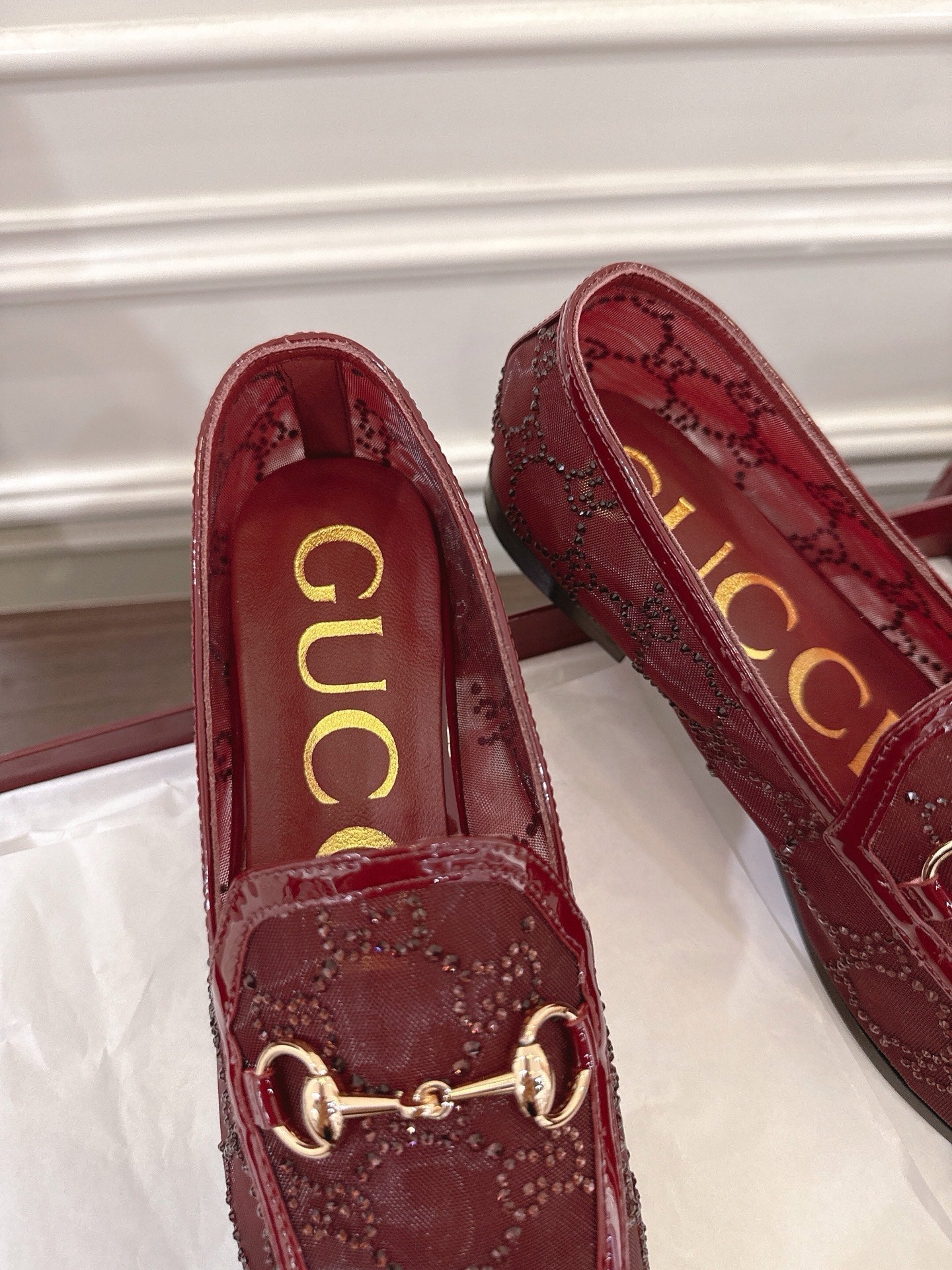 GG Jordaan Loafer Dark Red Mesh With Crystal