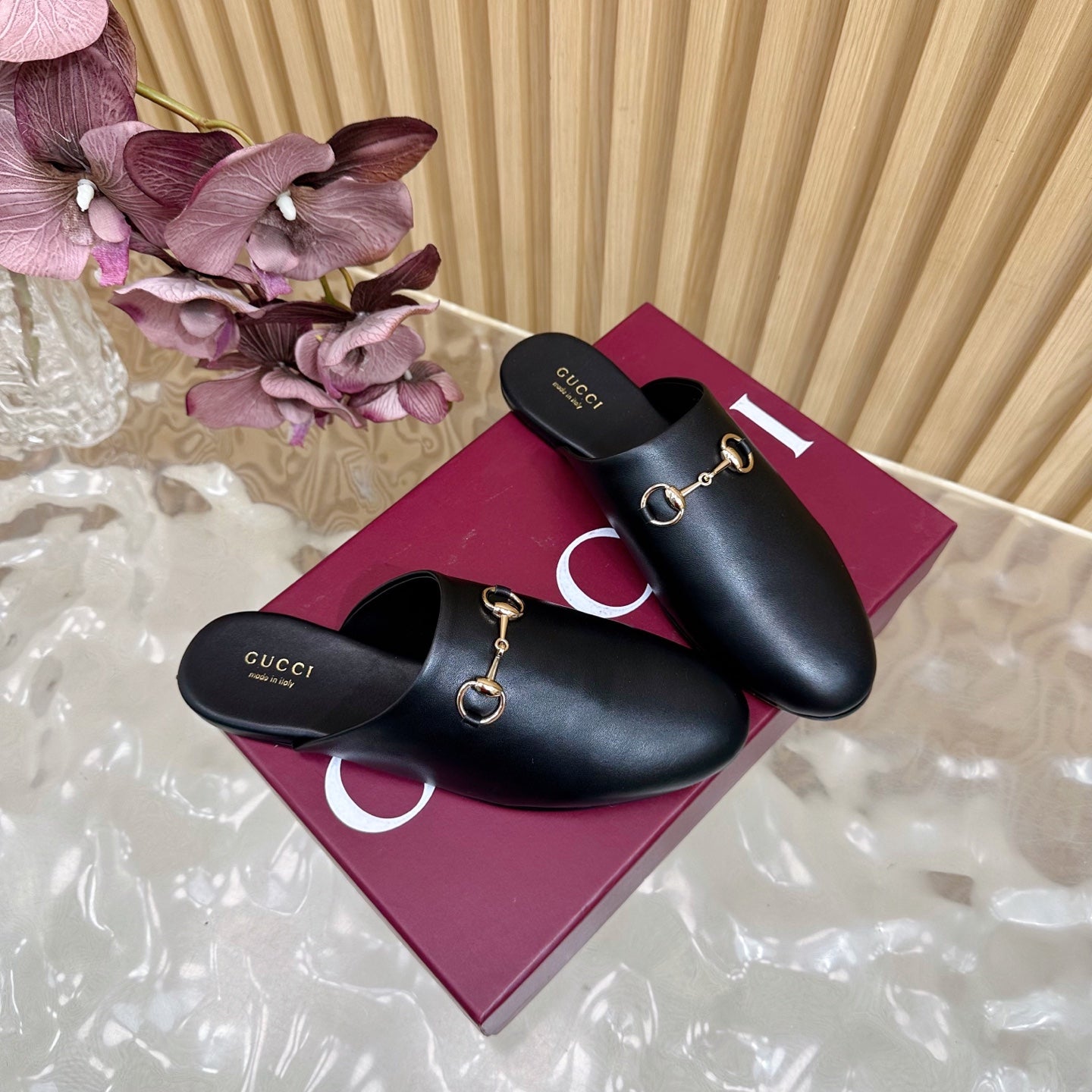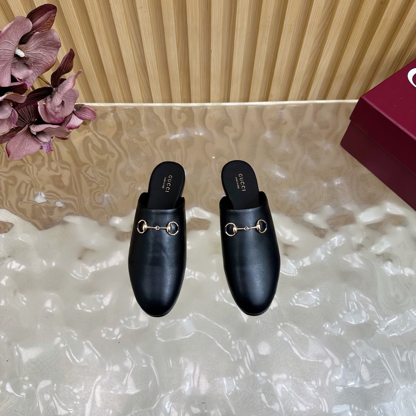 Gucci 25 Horsebit Mule Black Gold Cowhide 436323