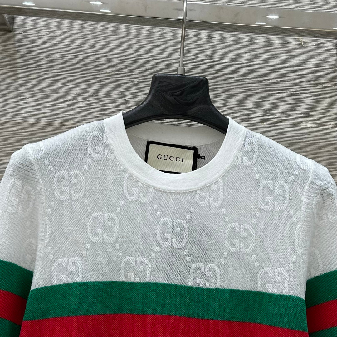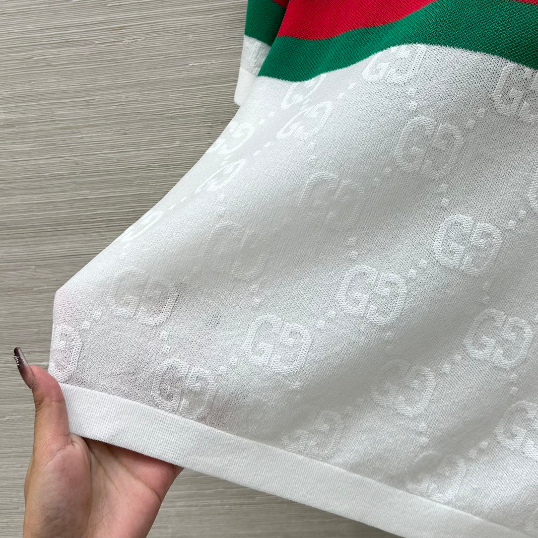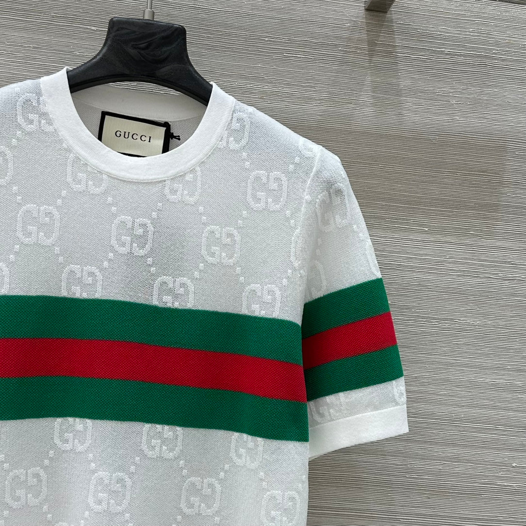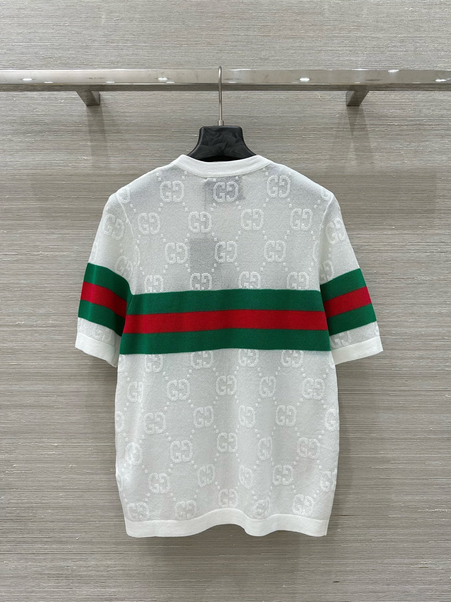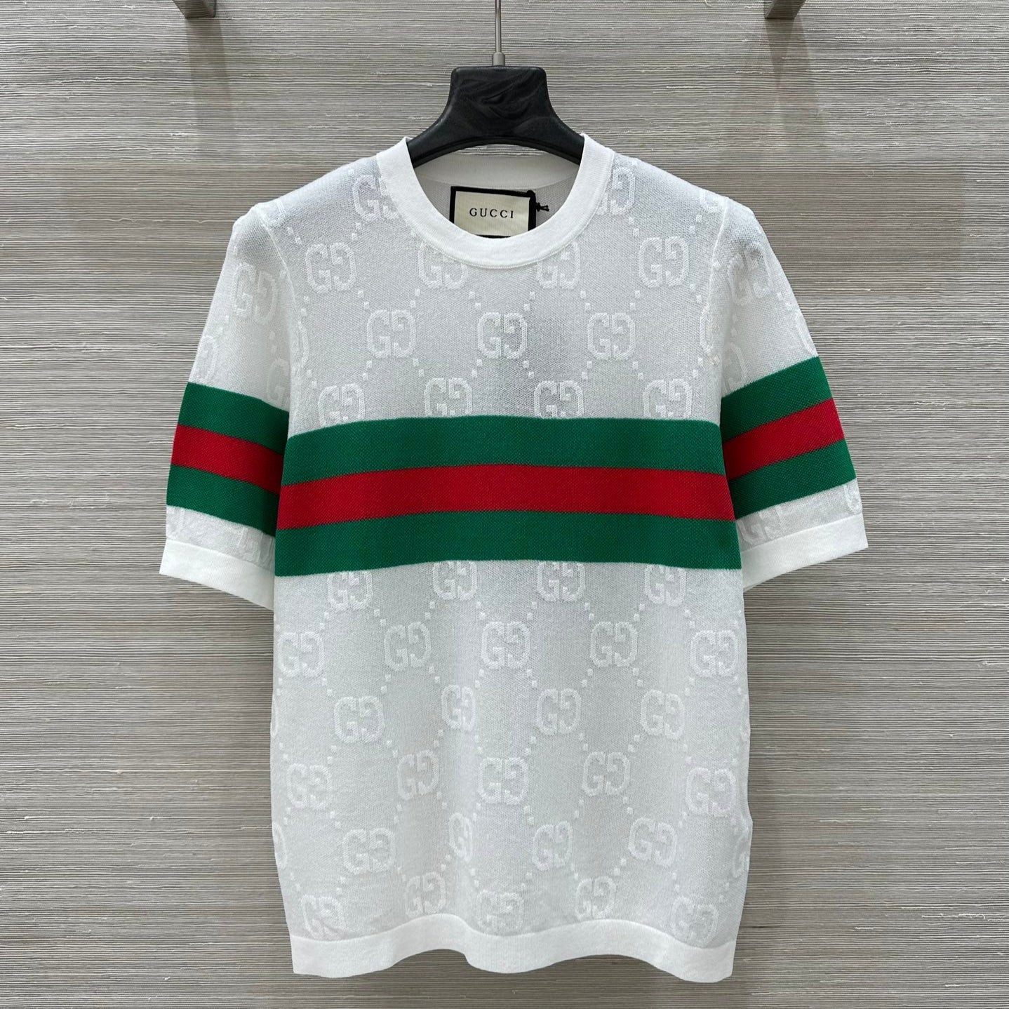 Gucci 25 Mesh Short-sleeved Top White Tencel