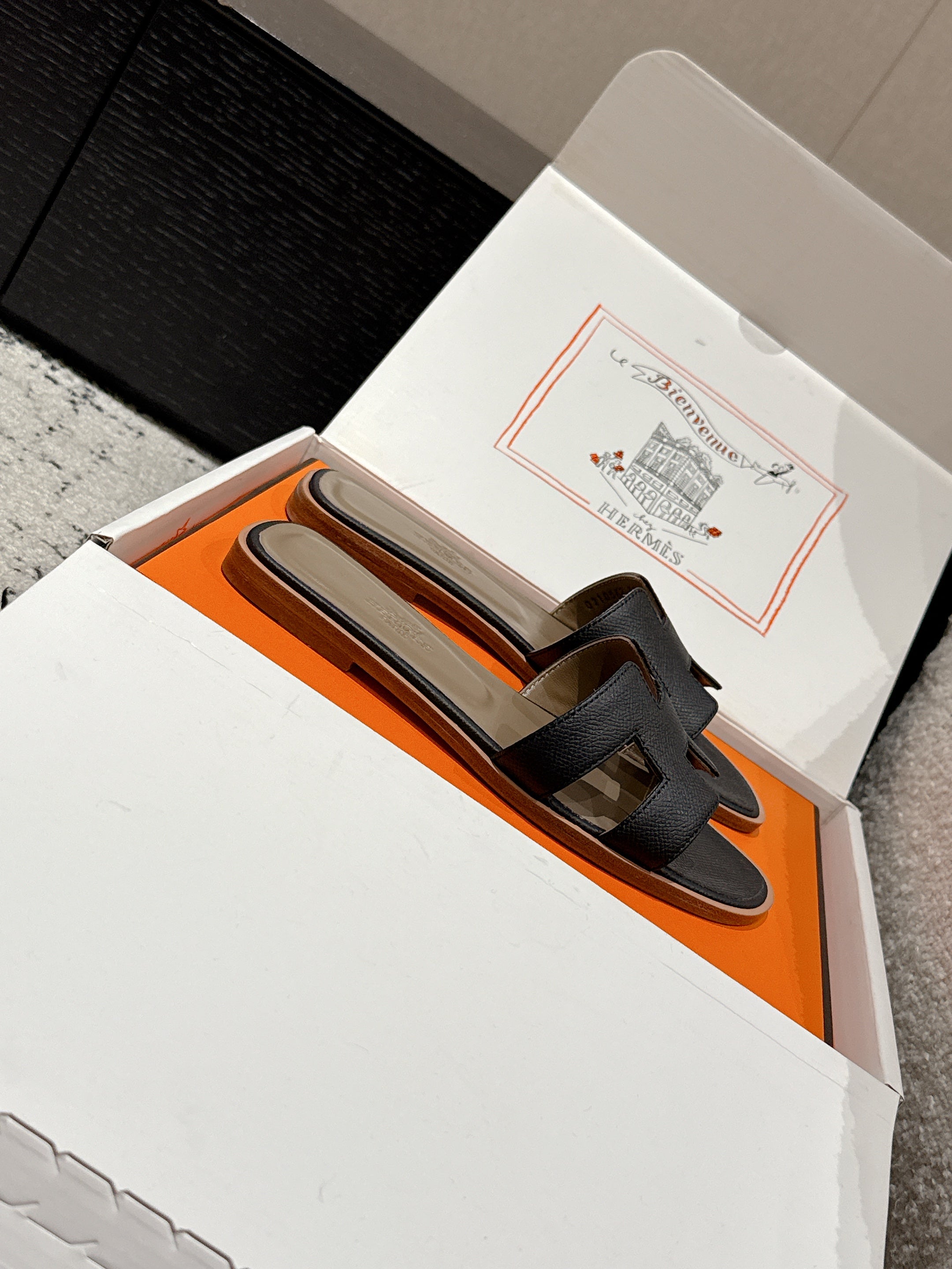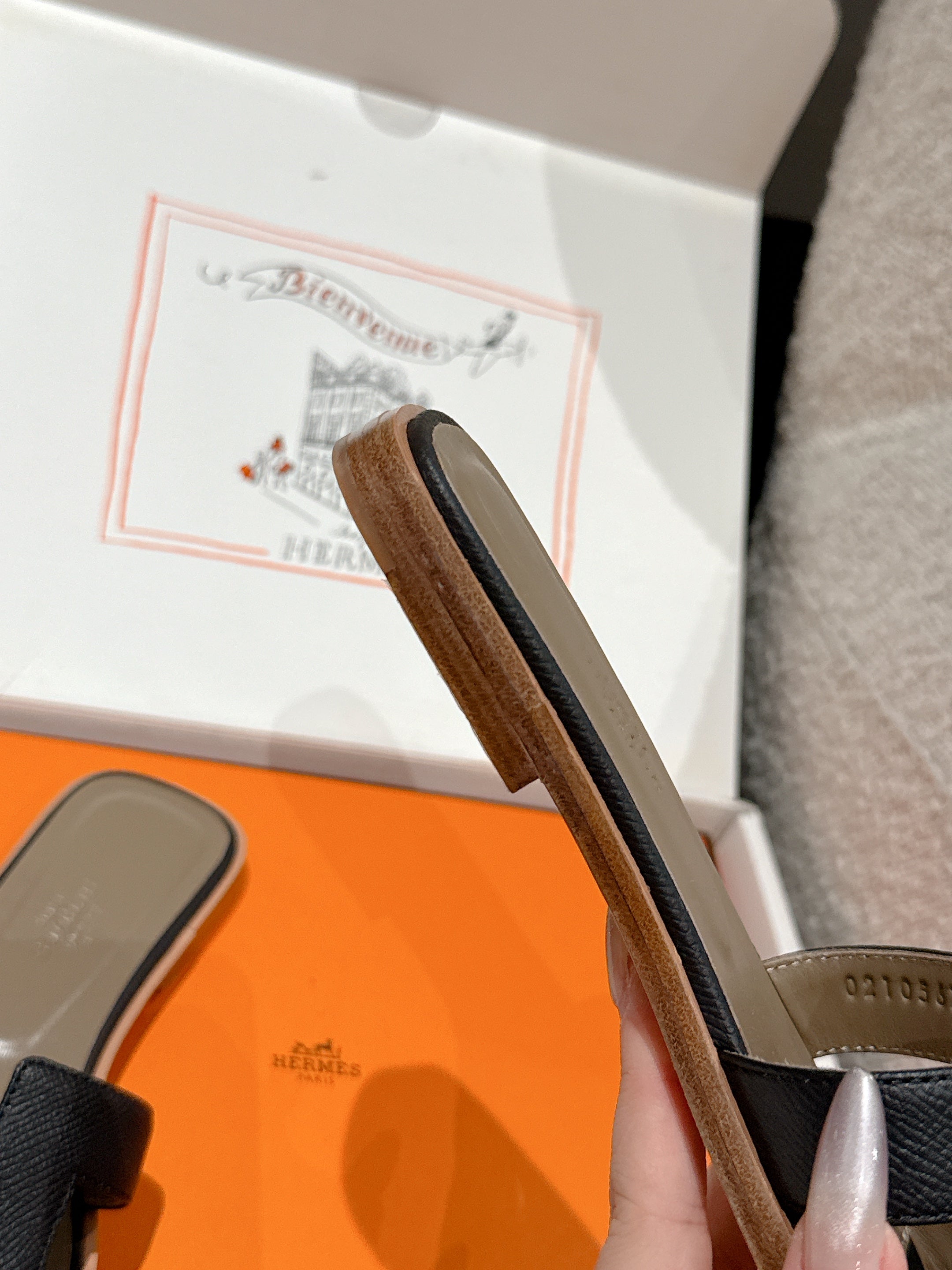 HM 25 Oran Sandal Black Epsom Etoupe Calfskin