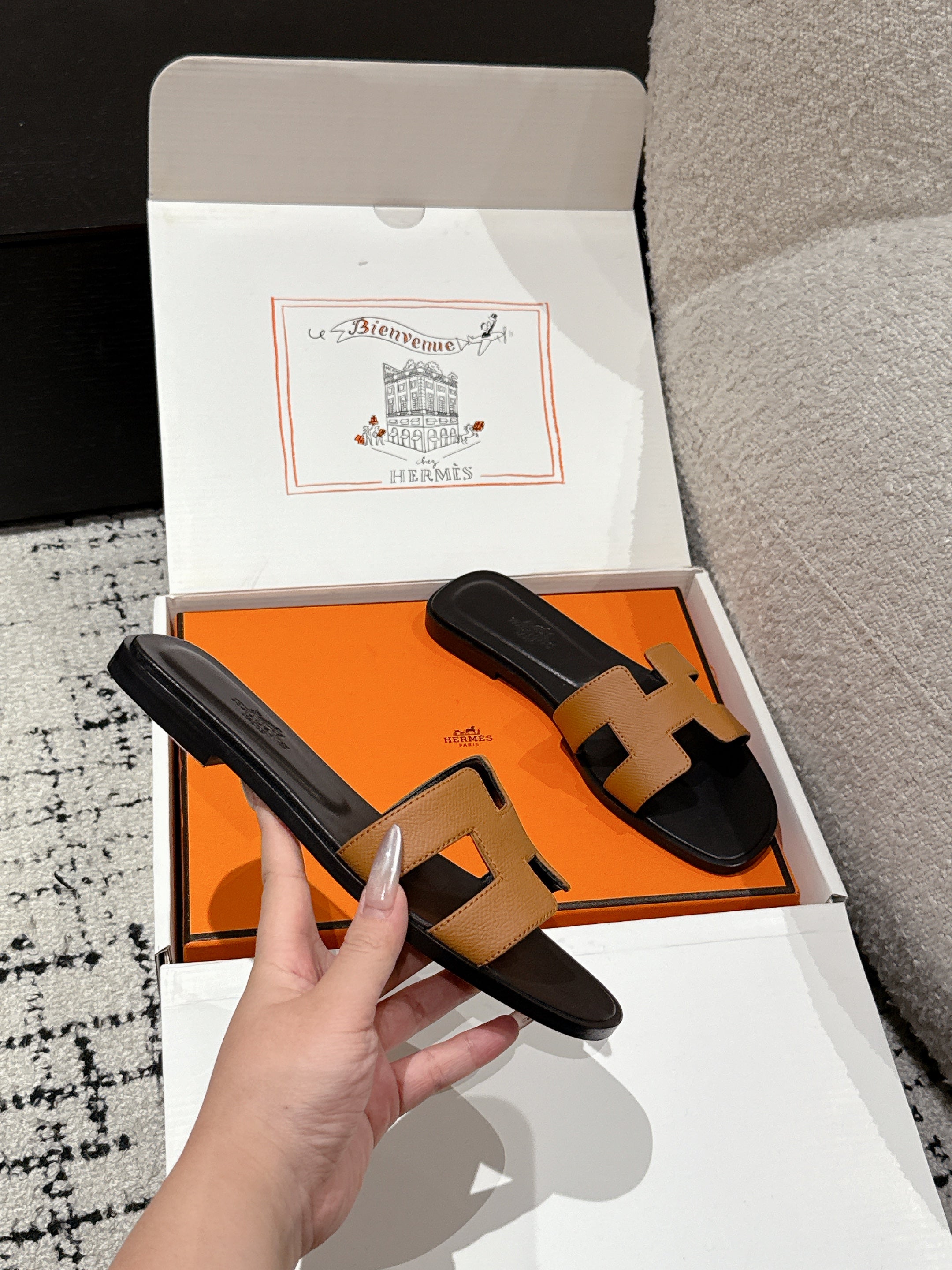 HM 25 Oran Sandal Gold Epsom Black Calfskin