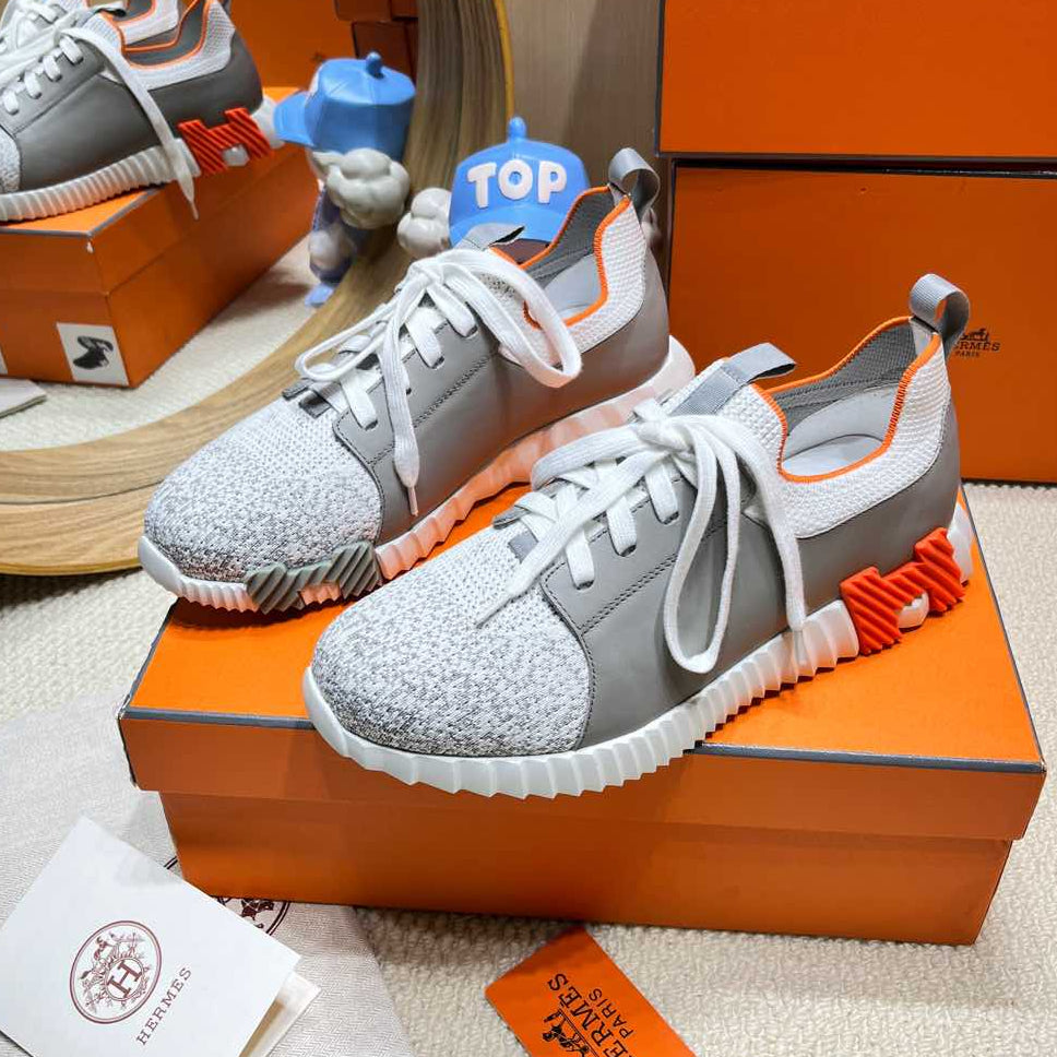 HM Depart slip-on Sneaker White mix gray Knitted fabric and Calfskin 206323