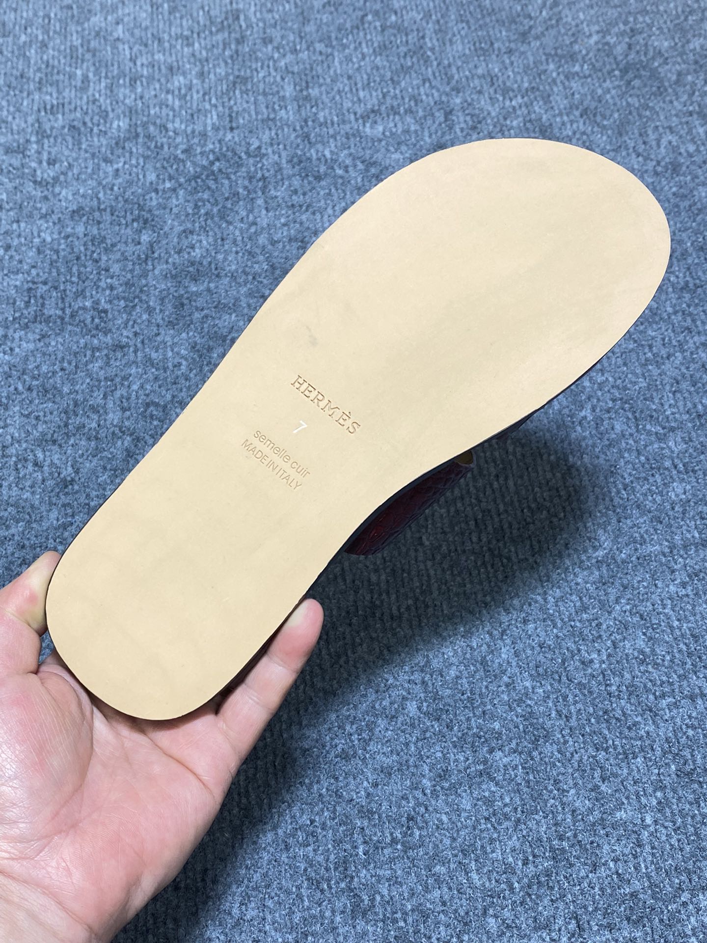 HM IZMIR CROCODILE MOTIF SANDAL INDIGO AND BRICK CALFSKIN