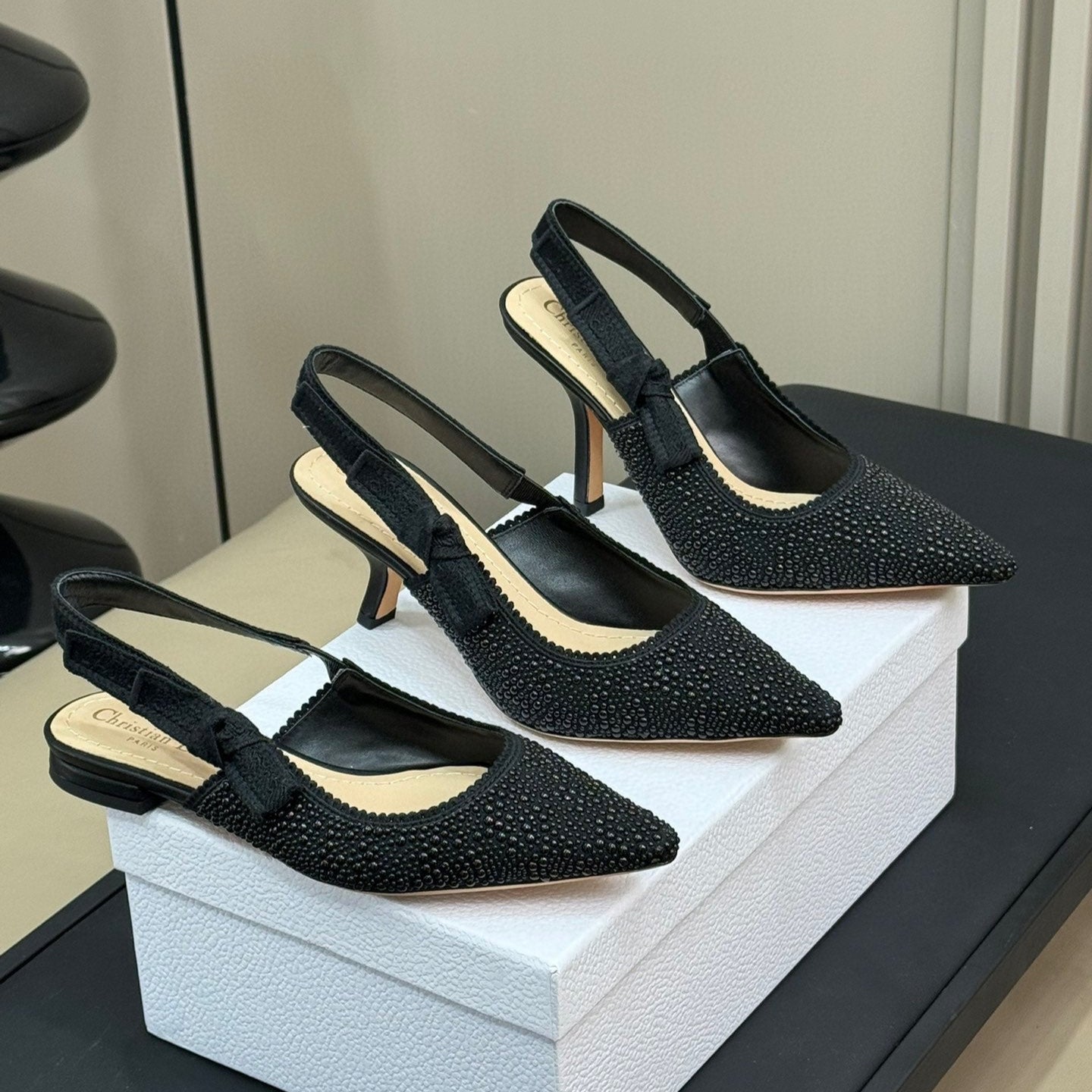 J'Adior Slingback Black Cotton Microbeads