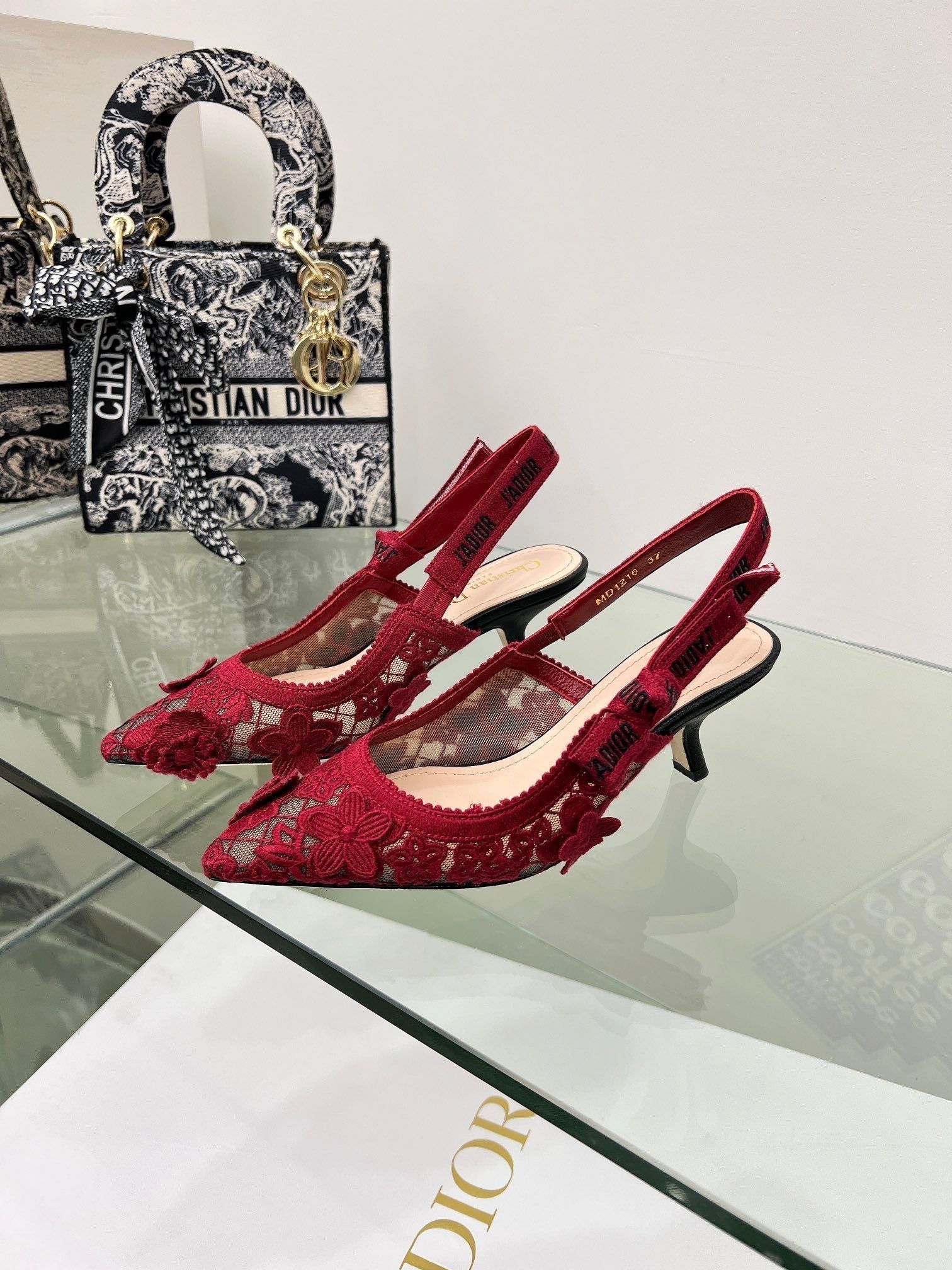 J'Adior Slingback Pump 65mm In Red Floral Embroidered Lace Fabric 100845