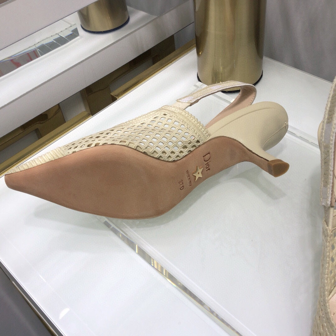 JAdior slingback pumps 65 transparent mesh beige embroidered cotton
