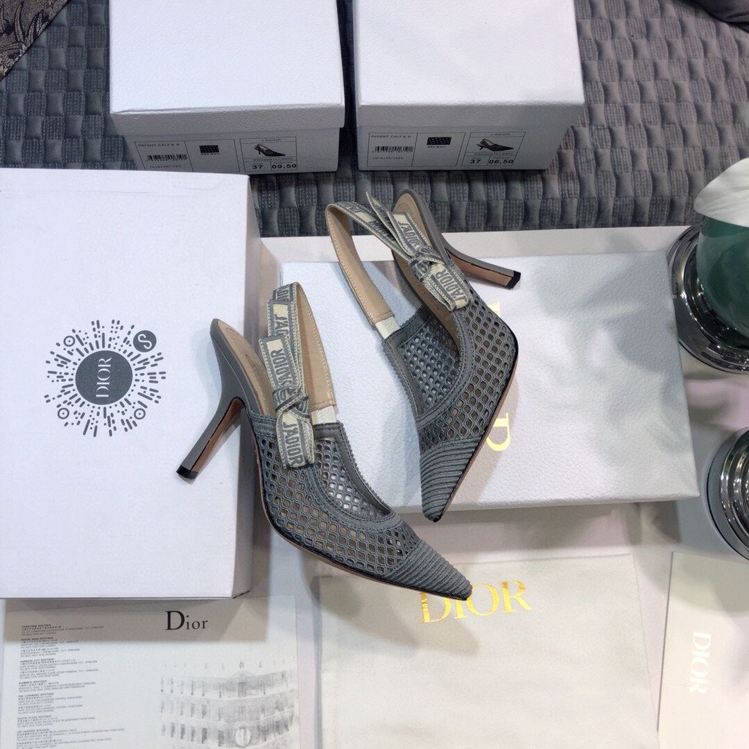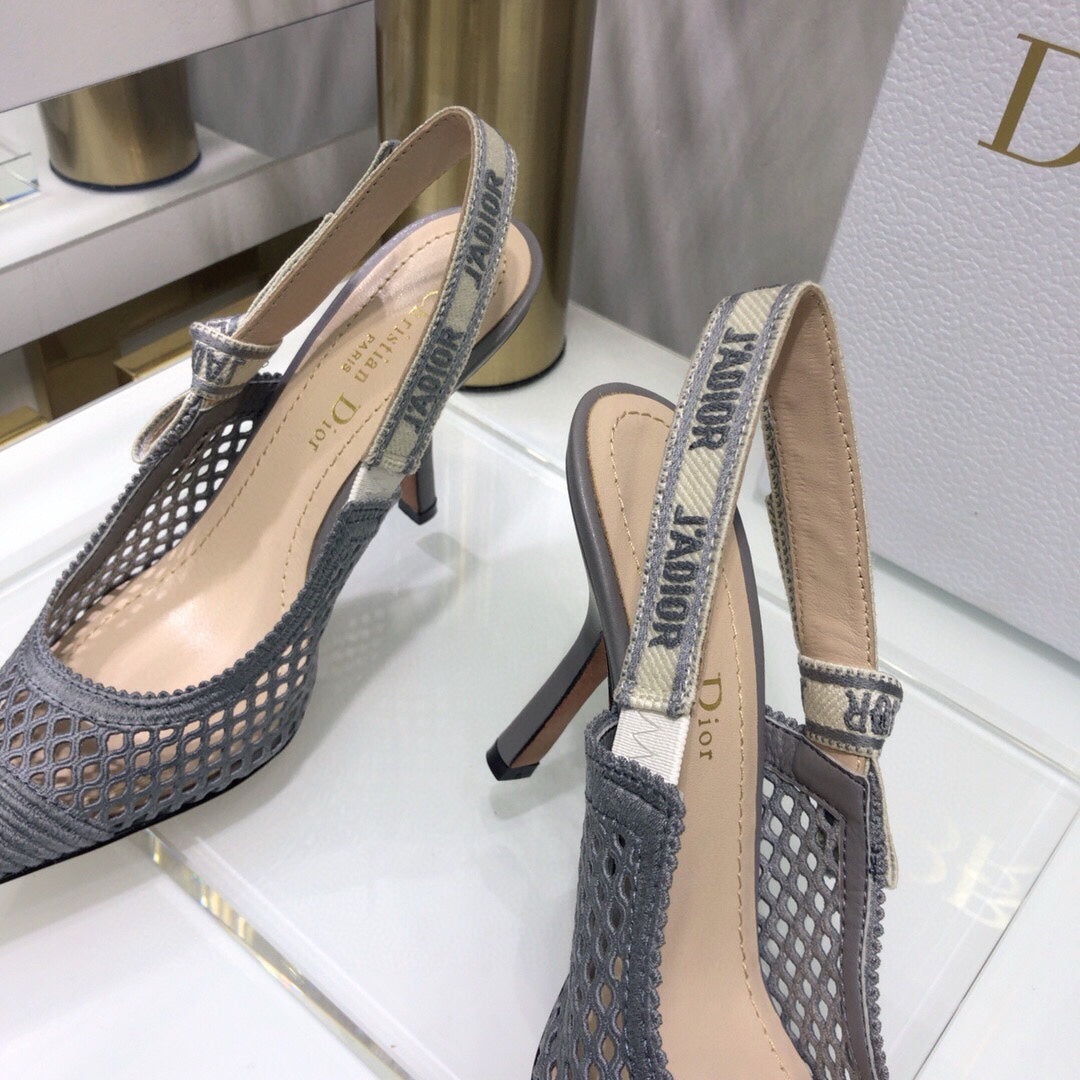 JAdior slingback pumps 95 transparent mesh grey embroidered cotton