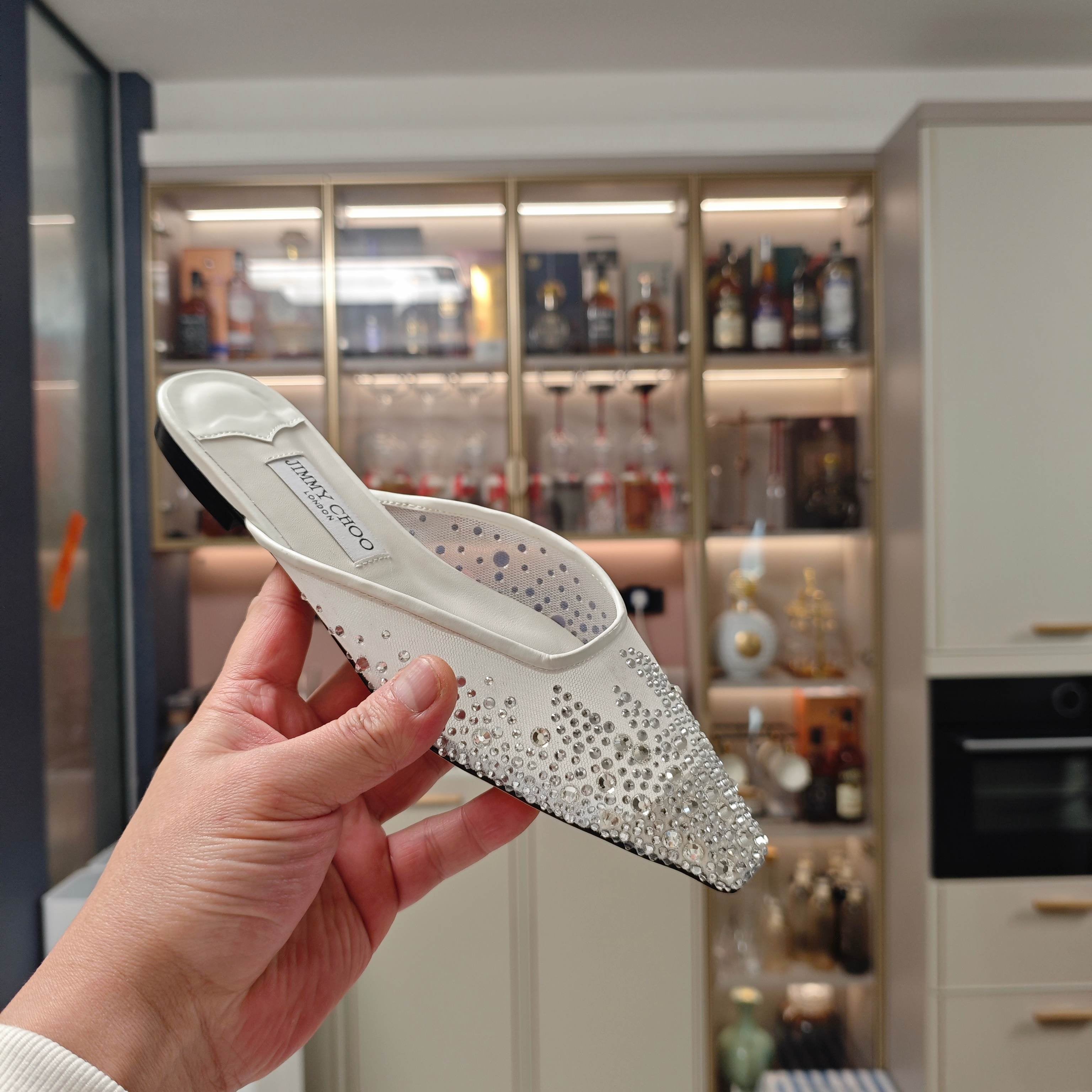 Jimmy 25 Mule Flats White Mesh Gauze 240056