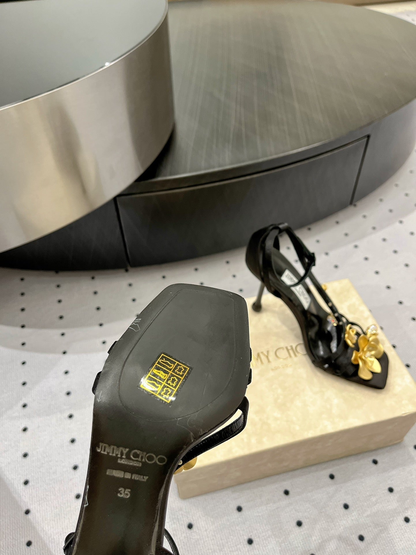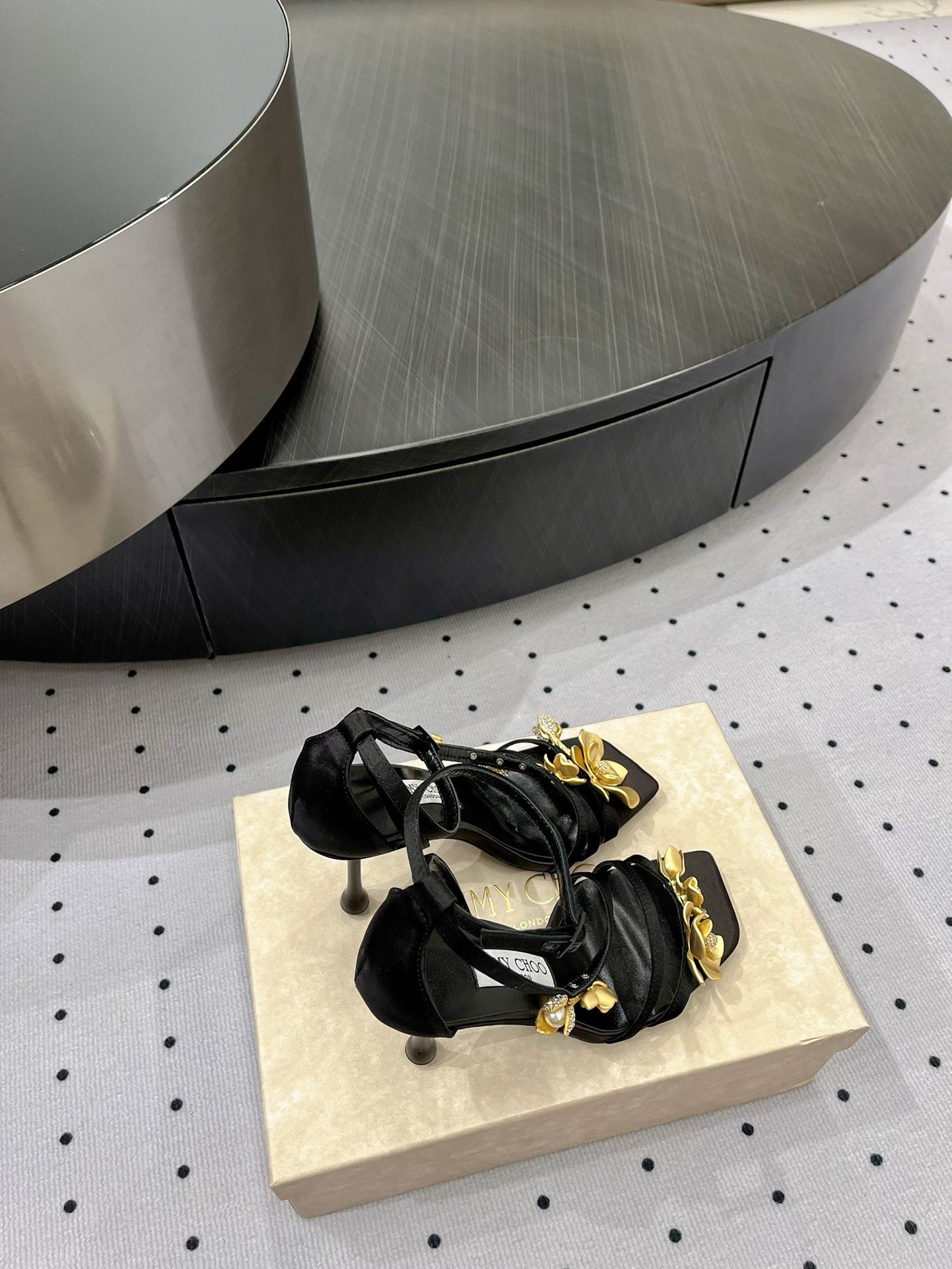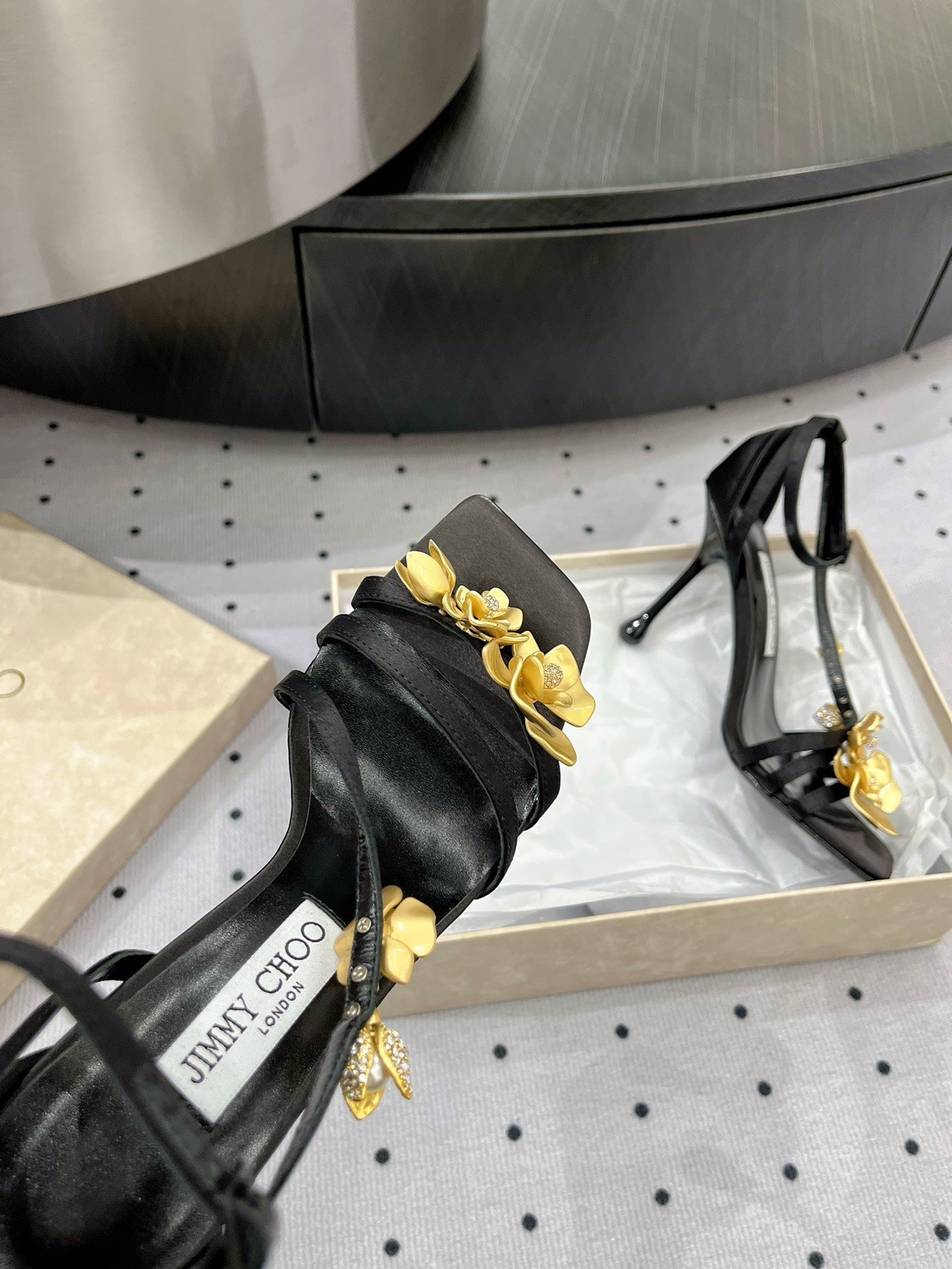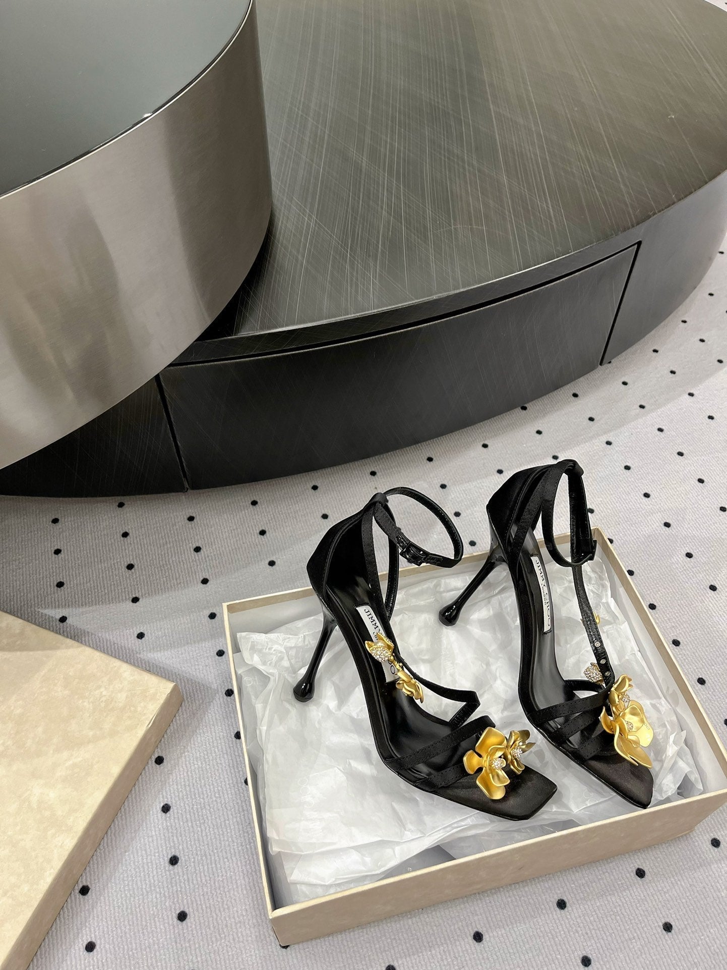 Jimmy Zea 95 In Black Cowhide Sandals With Metal Flowers 591586