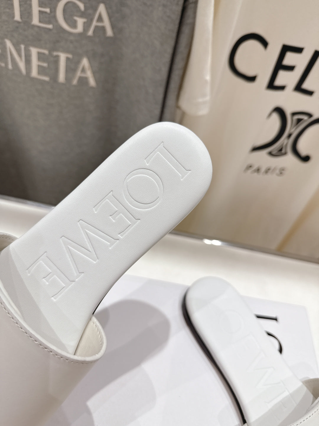 Loewe 25 Pebble Slide White Calfskin
