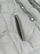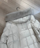 LP 25 Hooded Long Goose Down Light Gray Jacket with Fur Trim 124985