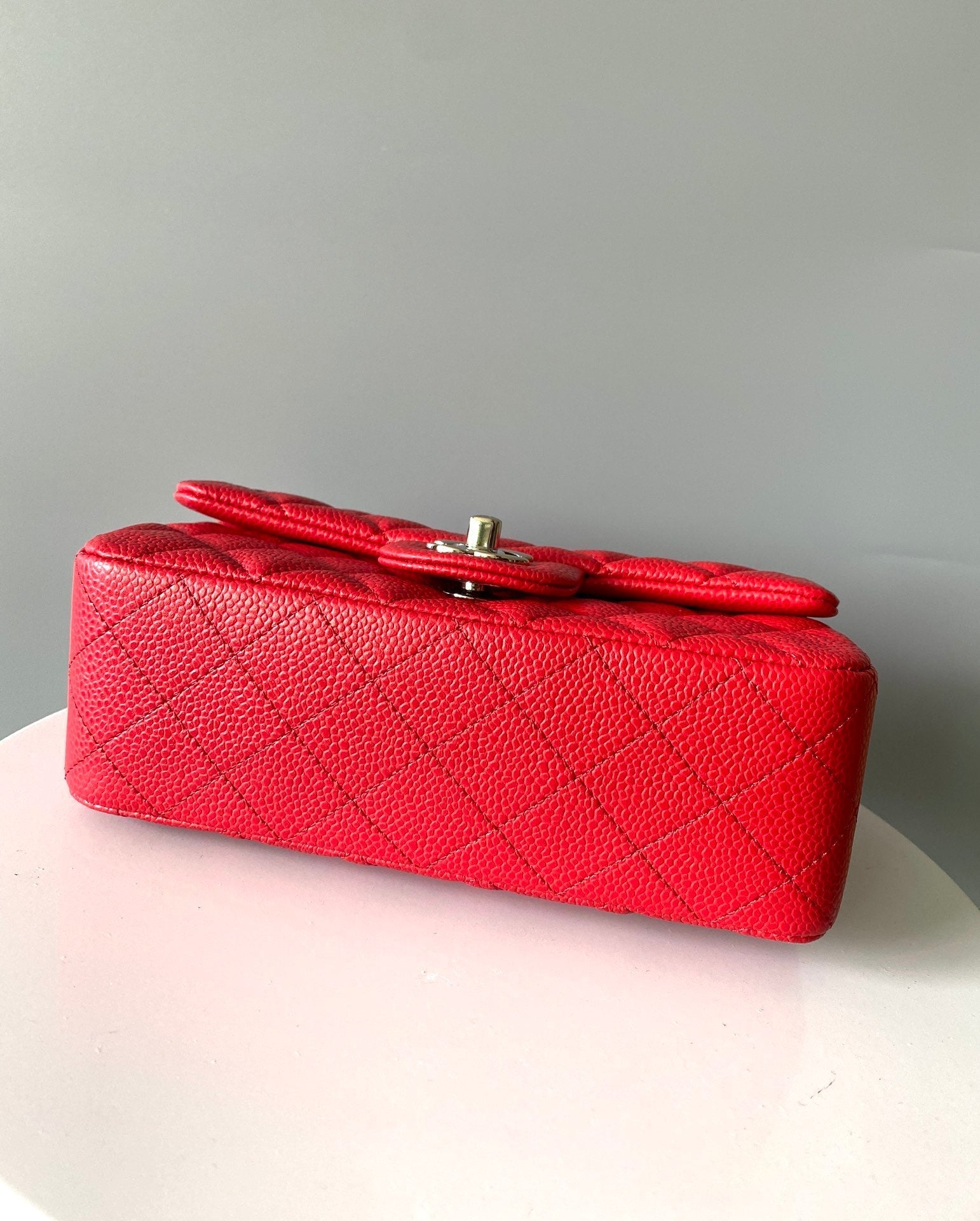 MINI RECTANGLE FLAP BAG 20CM RED CAVIAR SILVER HARDWARE