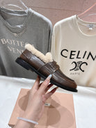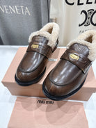 MiuMiu 25 Fur Loafer Brown mix Beige Cowhide 535595