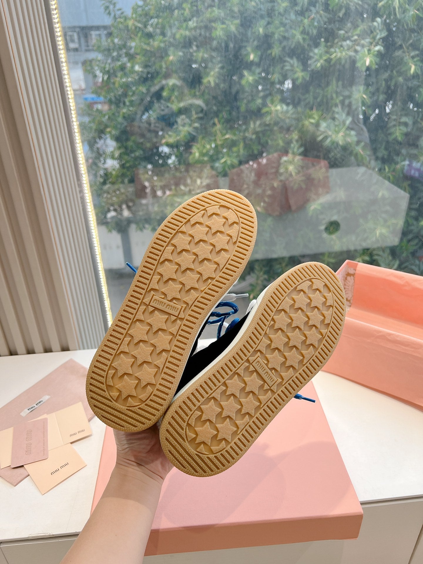 Miumiu 25 Platform Sneakers Black Blue Suede Wool 549099