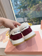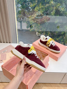 Miumiu 25 Platform Sneakers Burgundy Yellow Suede Wool 549102