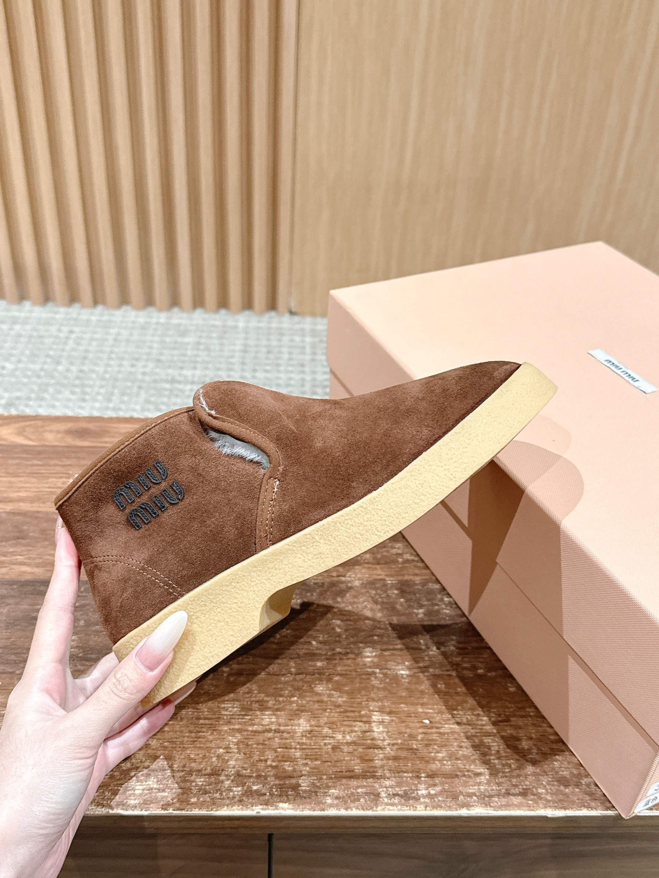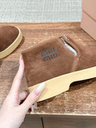 Miumiu 25 Slip-on Boot Brown Mix White Suede Wool 553705