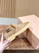 Miumiu 25 Slip-on Boot Light Brown Mix White Suede Wool 553706