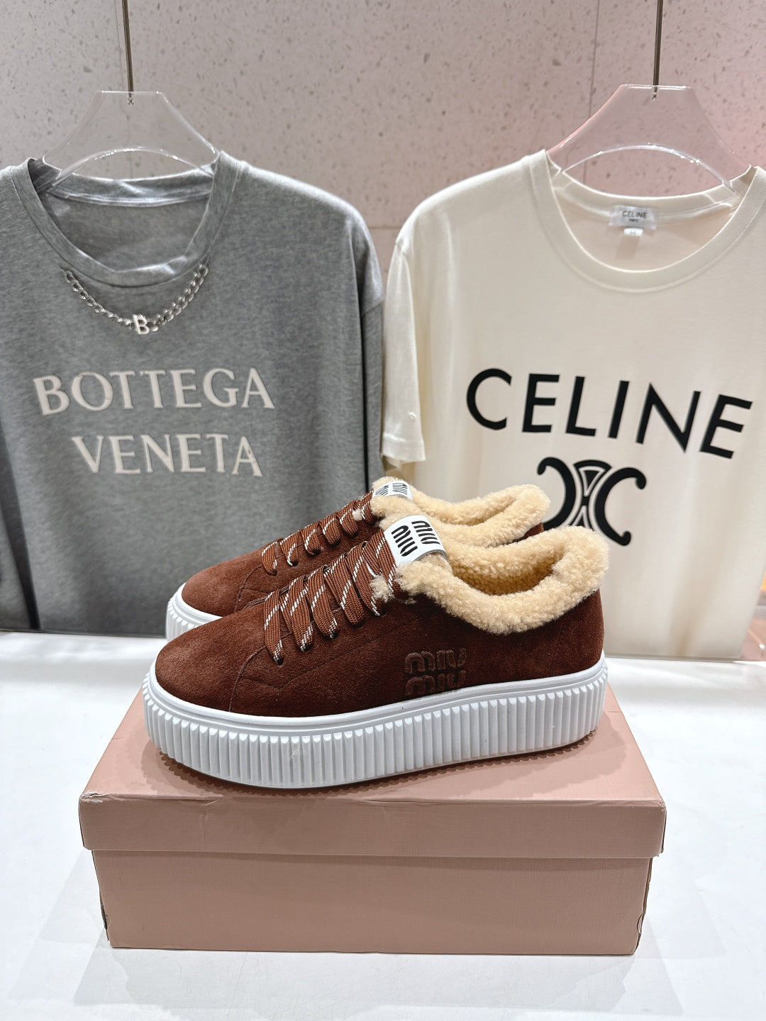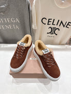 MiuMiu 25 Sneaker Brown Beige Suede Fur 535589