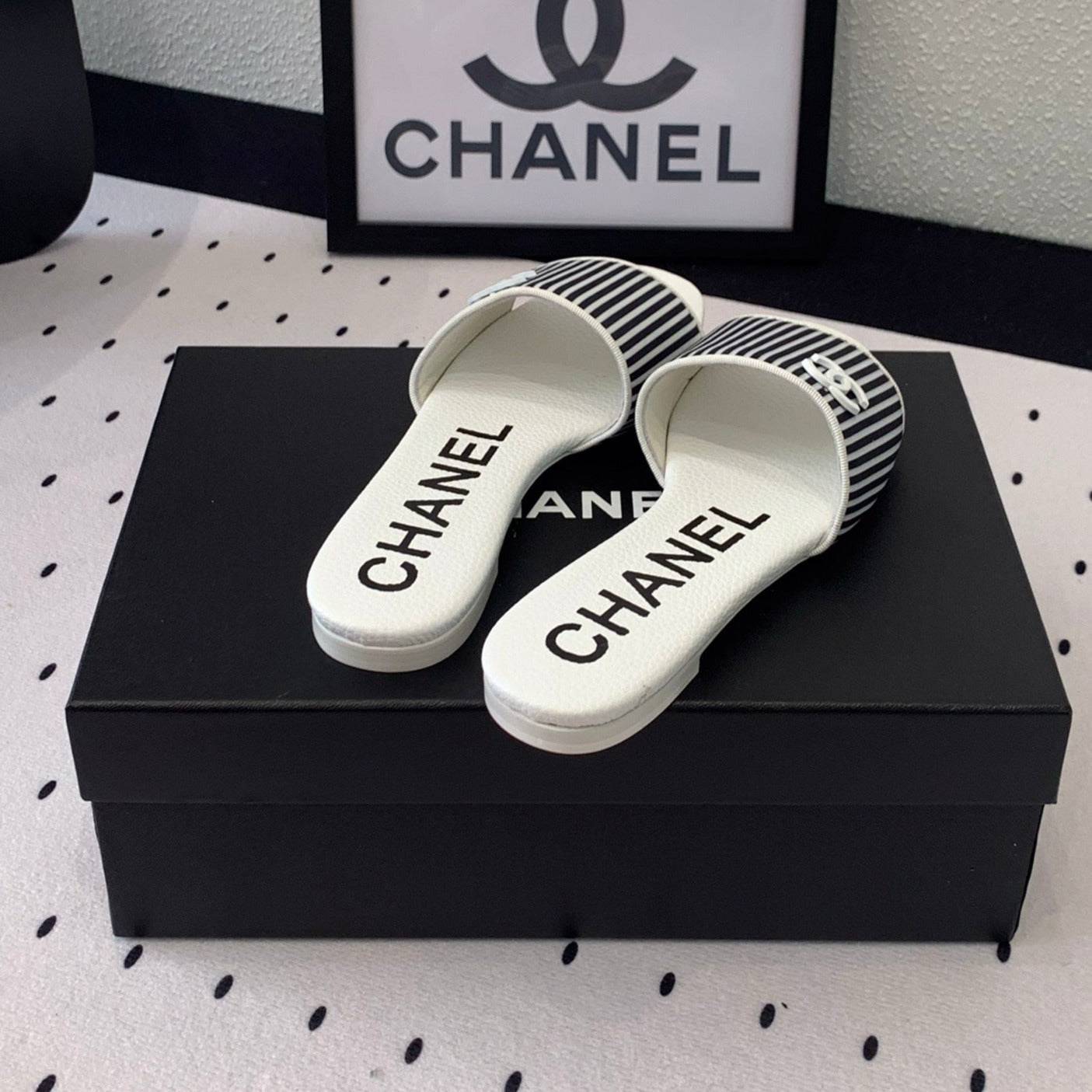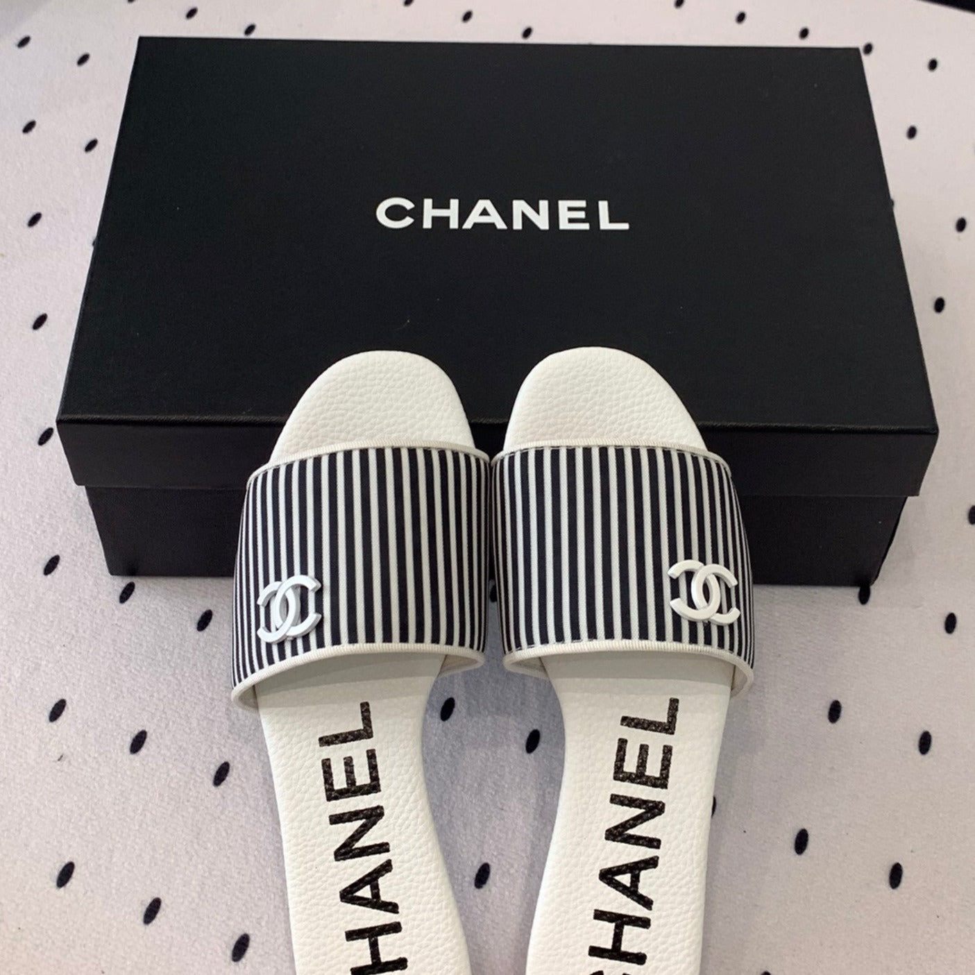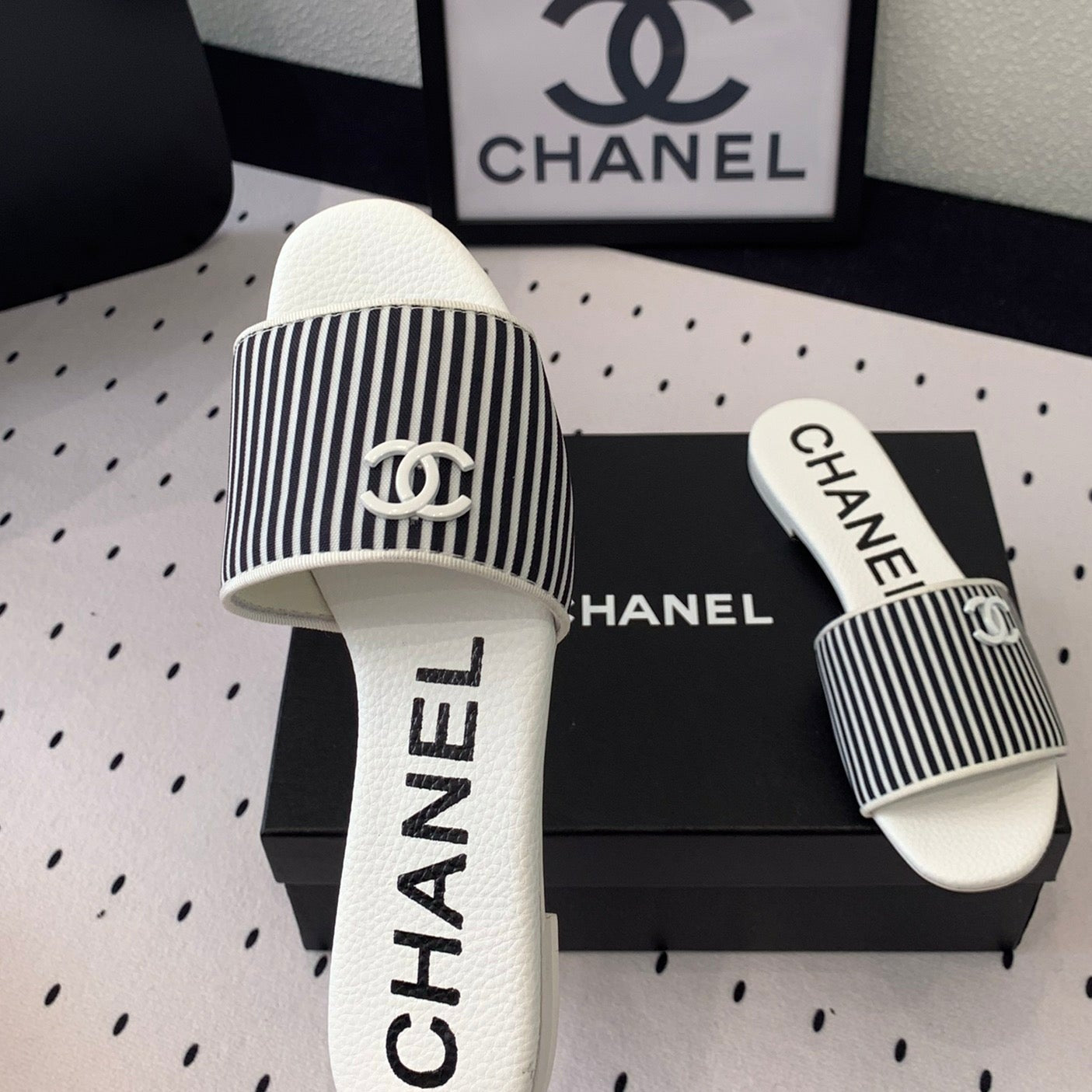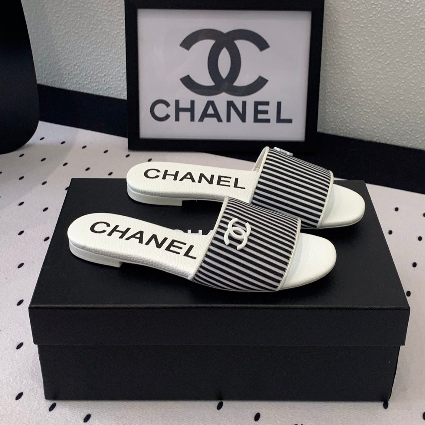 mule sandal striped black white