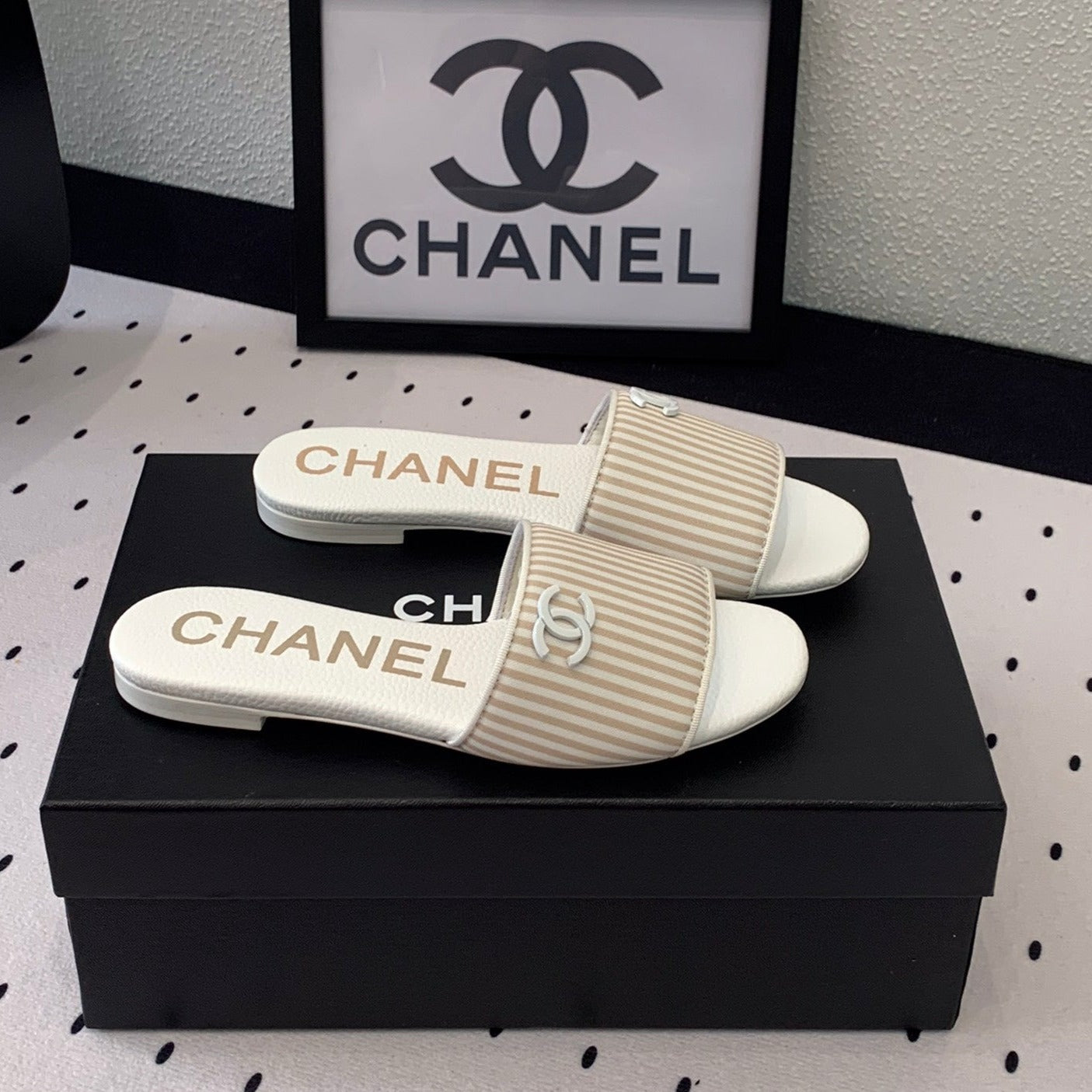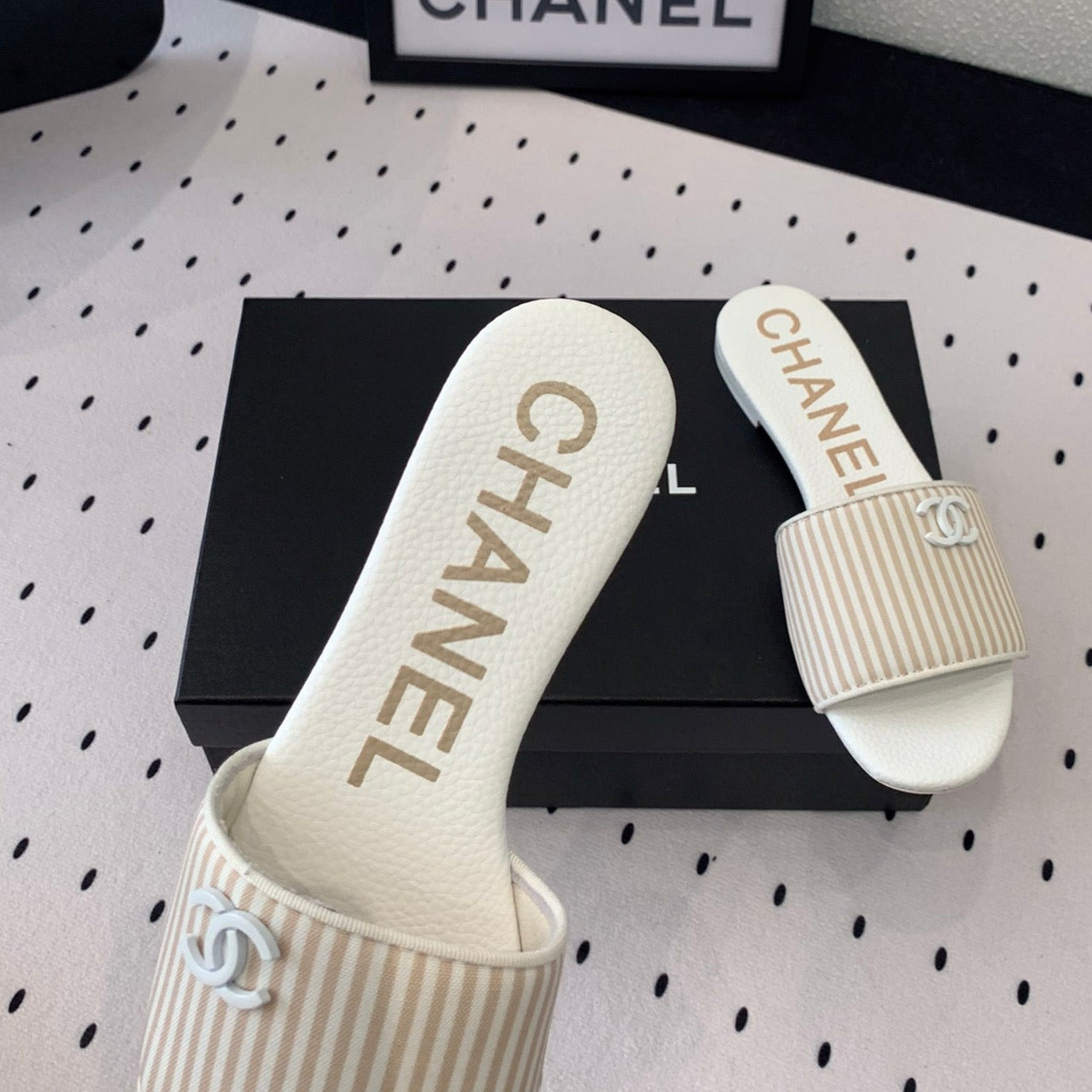 mule sandal striped beige white