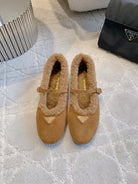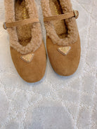 Pra 2025 Fur-lined Flat Tan Suede Wool 557121