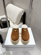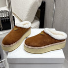 Pra 2025 Fur Mule Brown White Suede Wool 554327