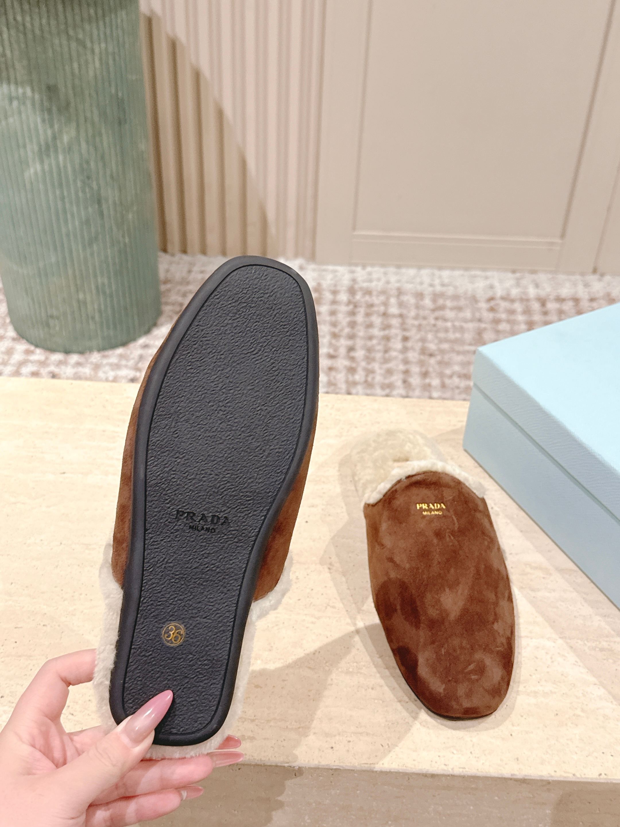 Pra 2025 Mule Brown Beige Suede Wool 556282