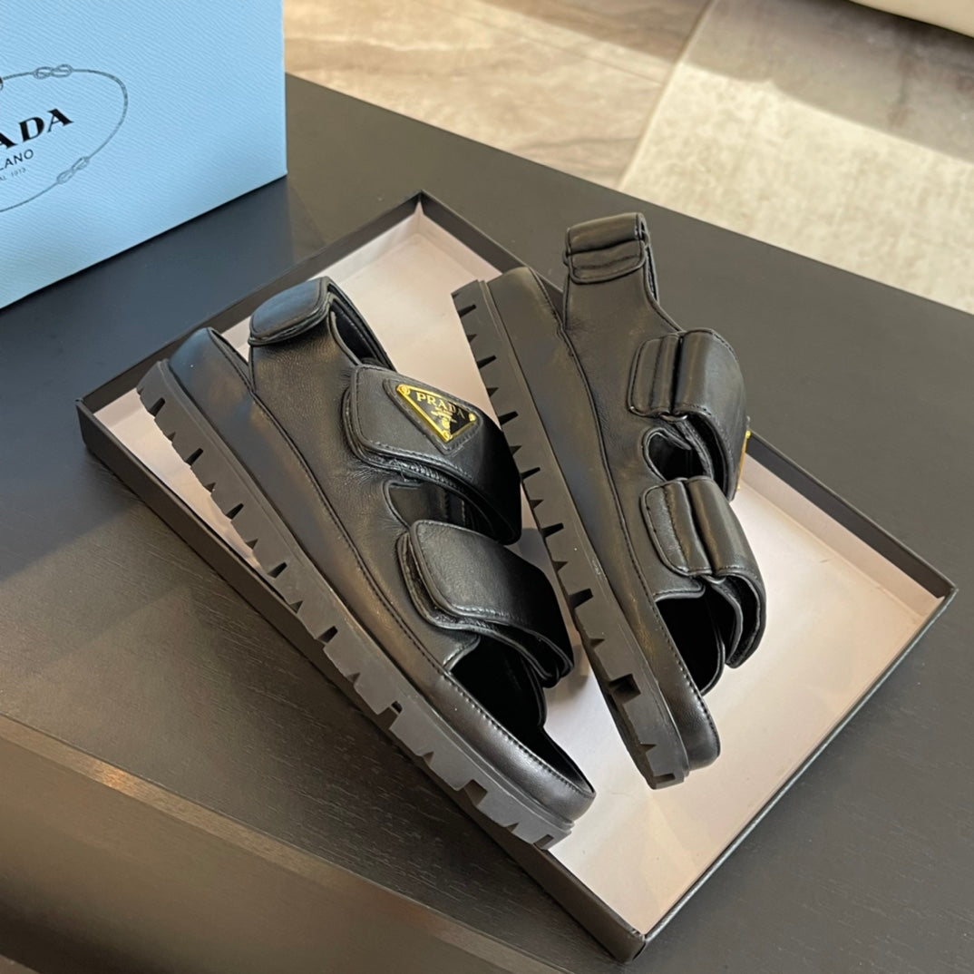 PRA FLAT NAPPA SANDALS BLACK LAMBSKIN