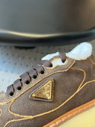 Prada 25s Mid-Top Sneaker Brown Suede And Wool 538432