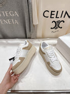 Prada 25s Platform Sneakers White Beige Calfskin And Suede 535494