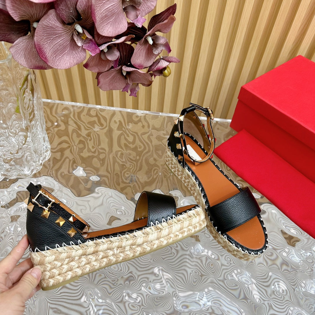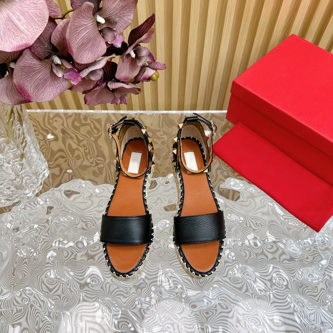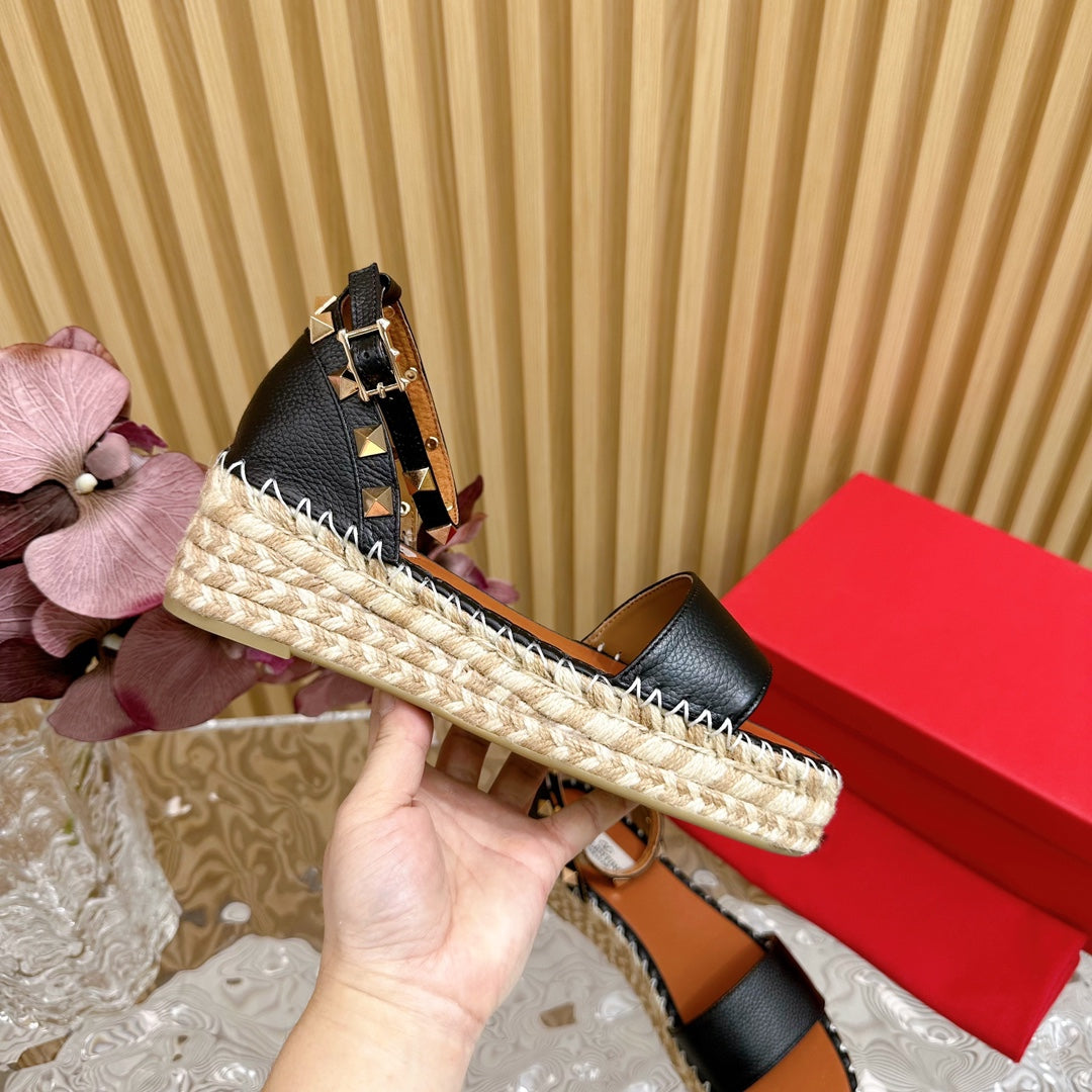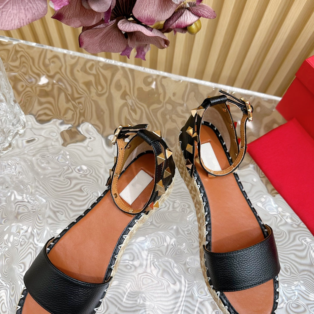 Rockstud Espadrille 45mm Black leather sandals