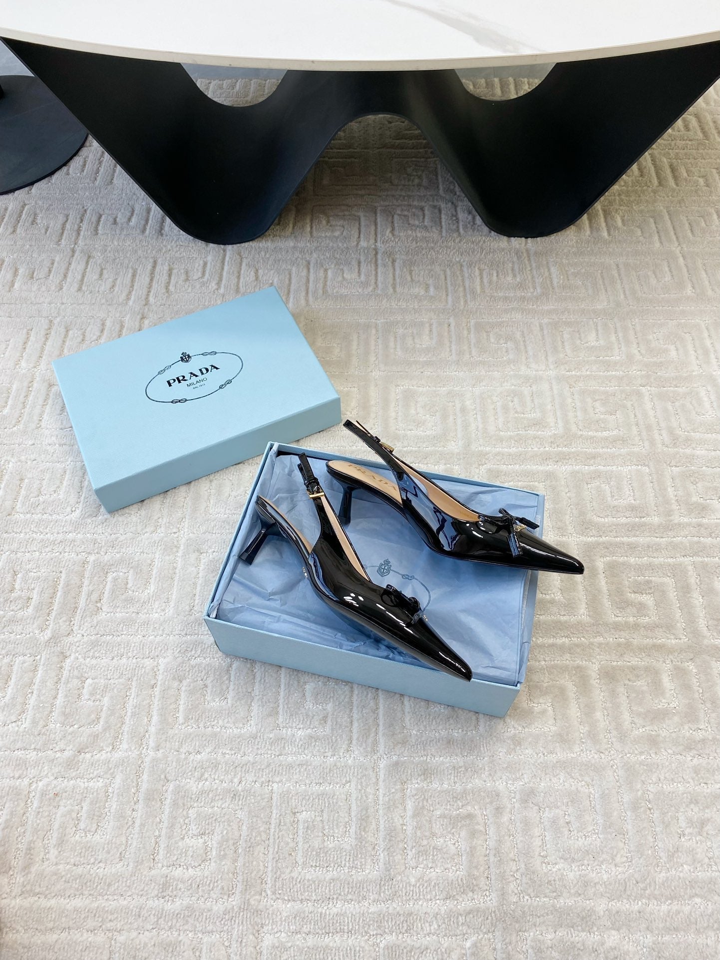 SLINGBACK PUMPS ATTACHED BOW IN BLACK GLOSSY CALFSKIN
