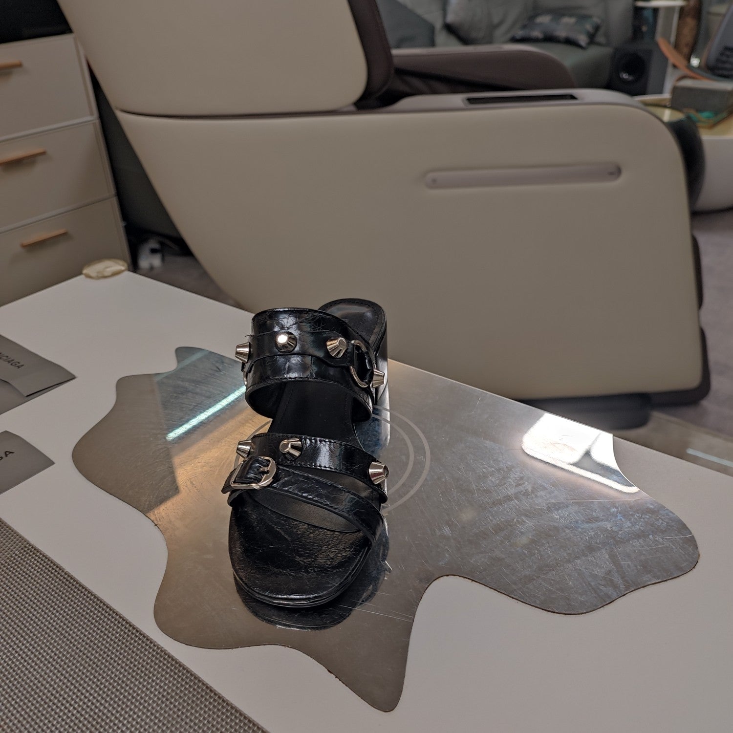 STRAPPY MEDIUM HEELED SANDALS IN BLACK STUDDED WAX-OIL SHEEPSKIN