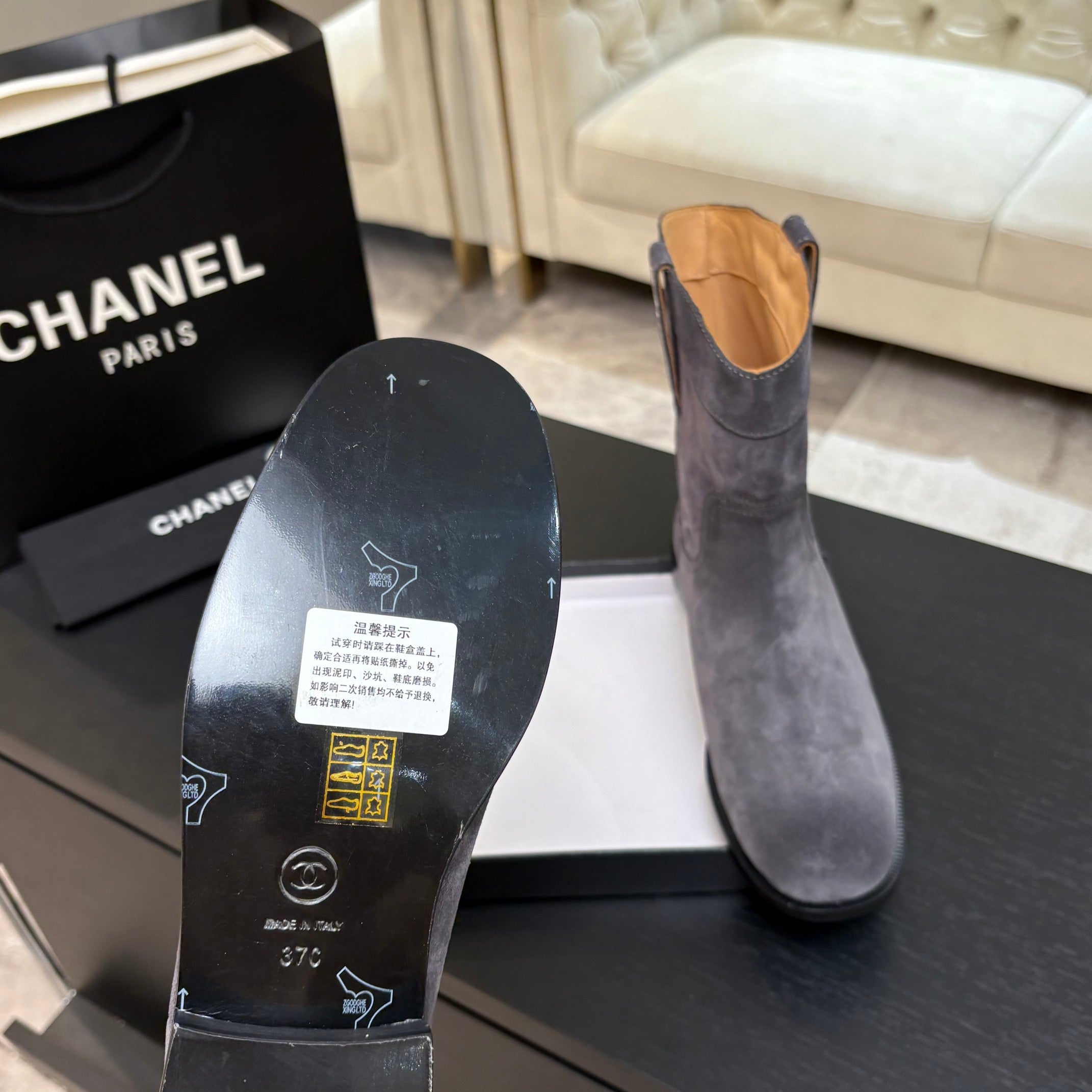 CC 2025 Vintage Cambon Mid-Calf Boots Black Suede Patent Leather 550641