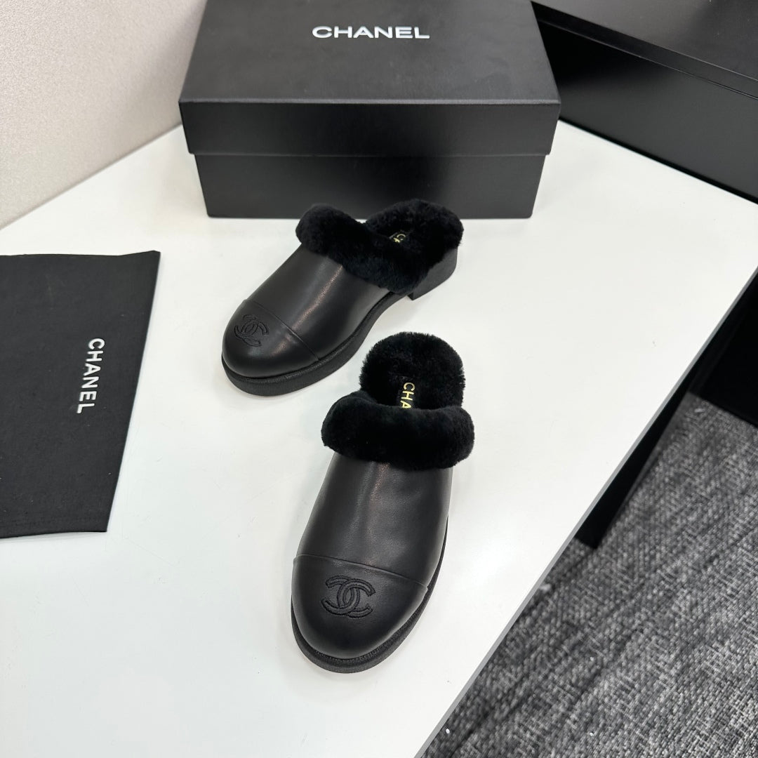 CC furry mule black cowhide and wool 532573