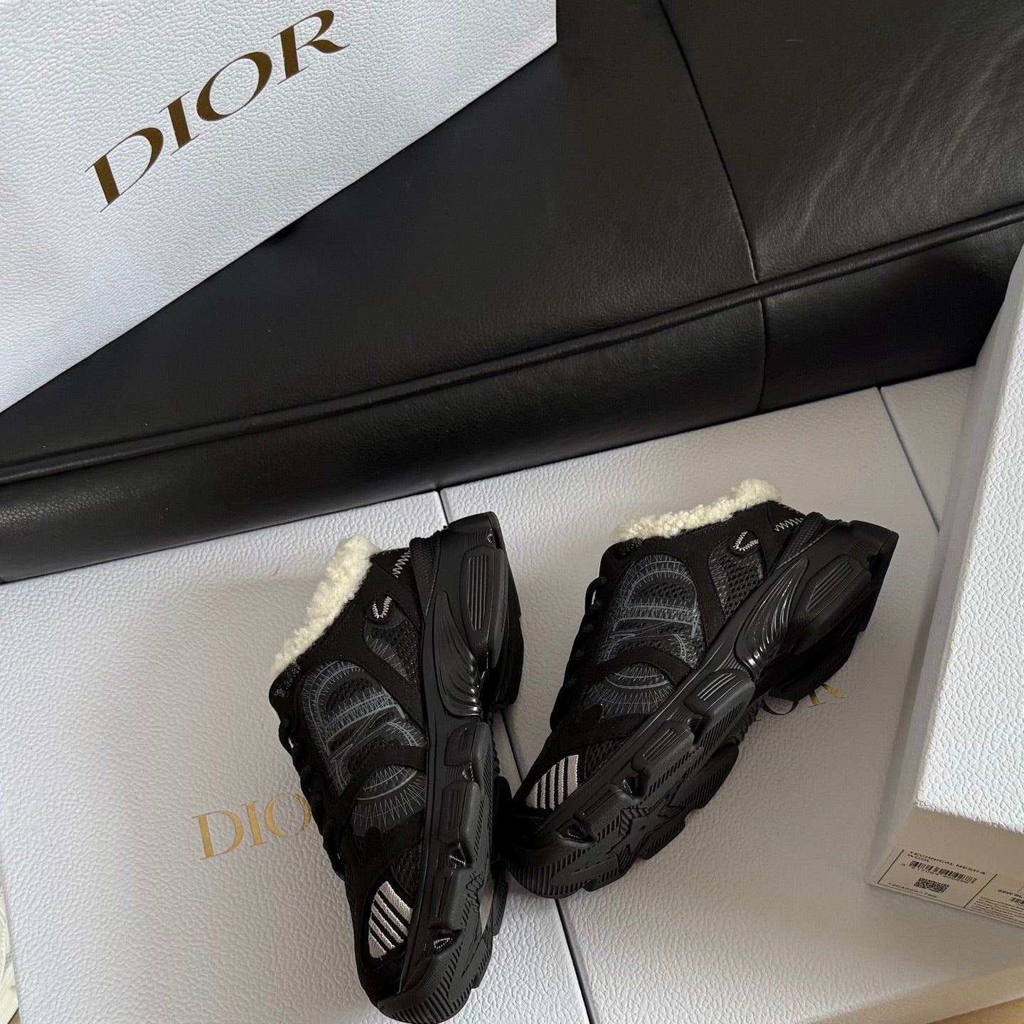 Dior 25 Chrono Sneakers White Black Mesh Calfskin 530324