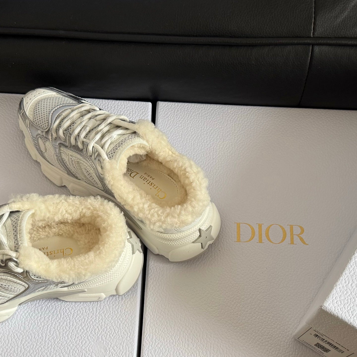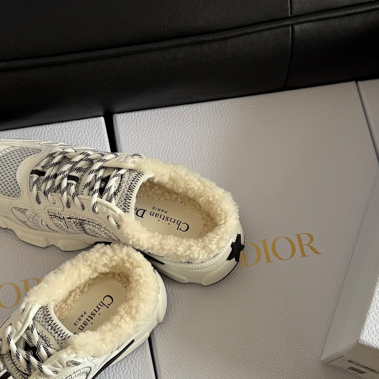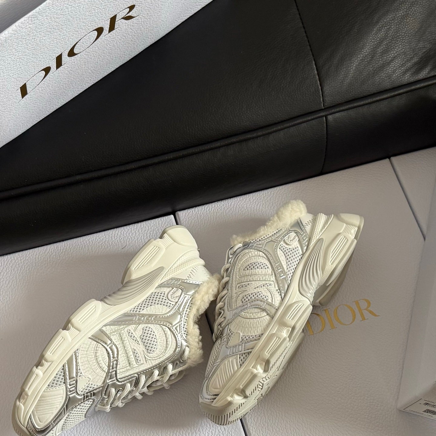 Dior 25 Chrono Sneakers Light Beige Fur Calfskin 530323