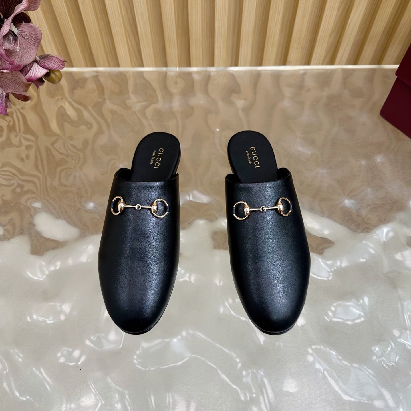 Gucci 25 Horsebit Mule Black Gold Cowhide 436323