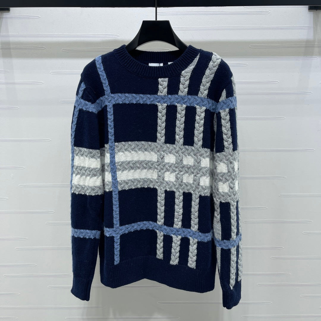 Burberry 25 Crew Neck Long-Sleeve Sweater Navy Blue Wool Cashmere