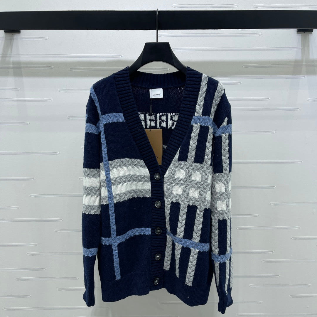 Burberry 25 V-neck Long-sleeved Cardigan Navy Blue Wool Cashmere