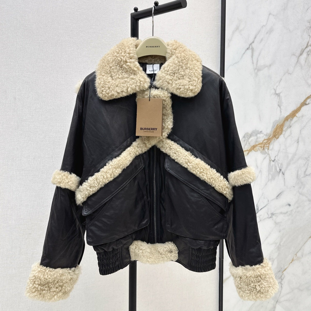 Burberry 25 Shearling-trimmed Bomber Jacket Black White Fur Leather
