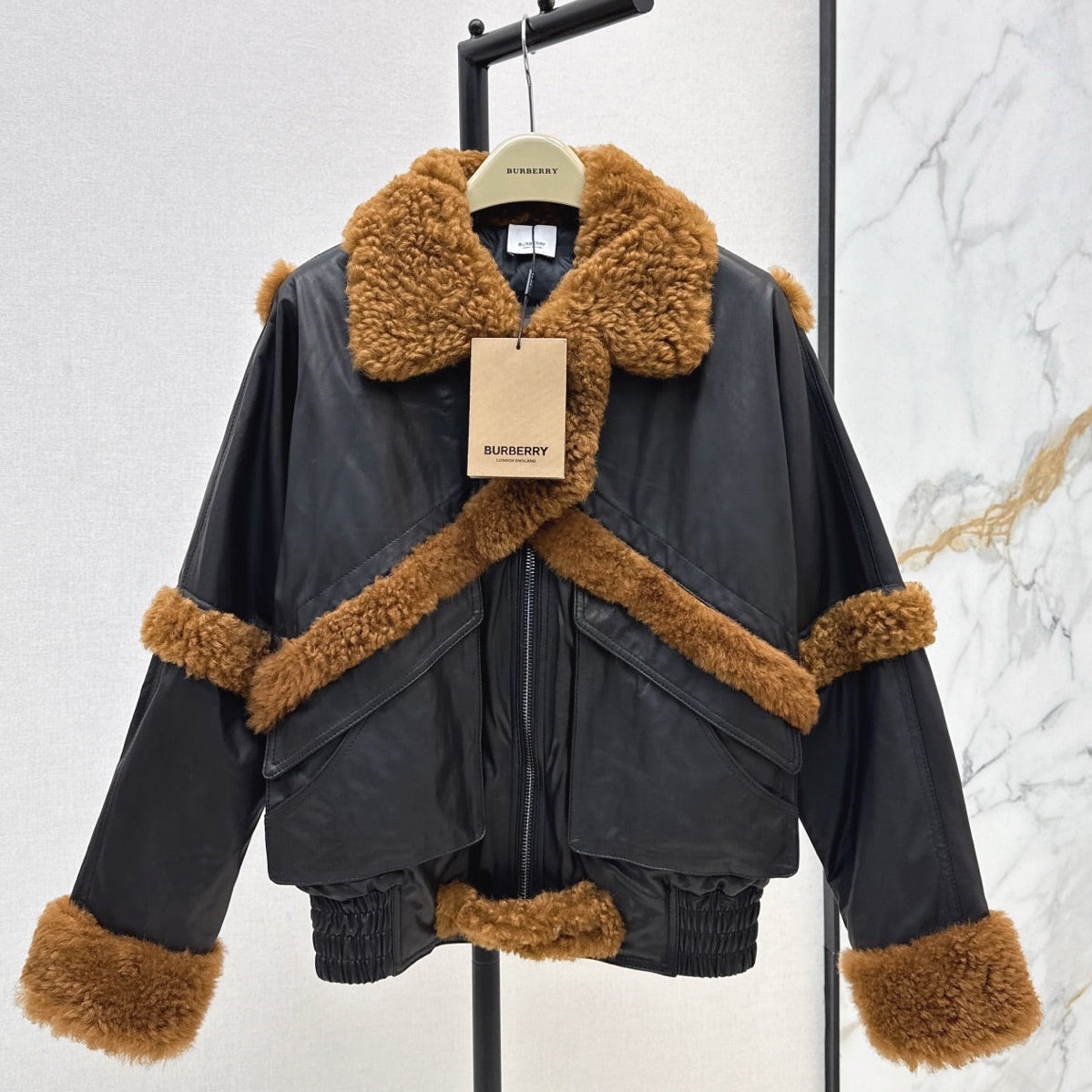 Burberry 25 Short Jacket Camel mix Black Shearling Fabric
