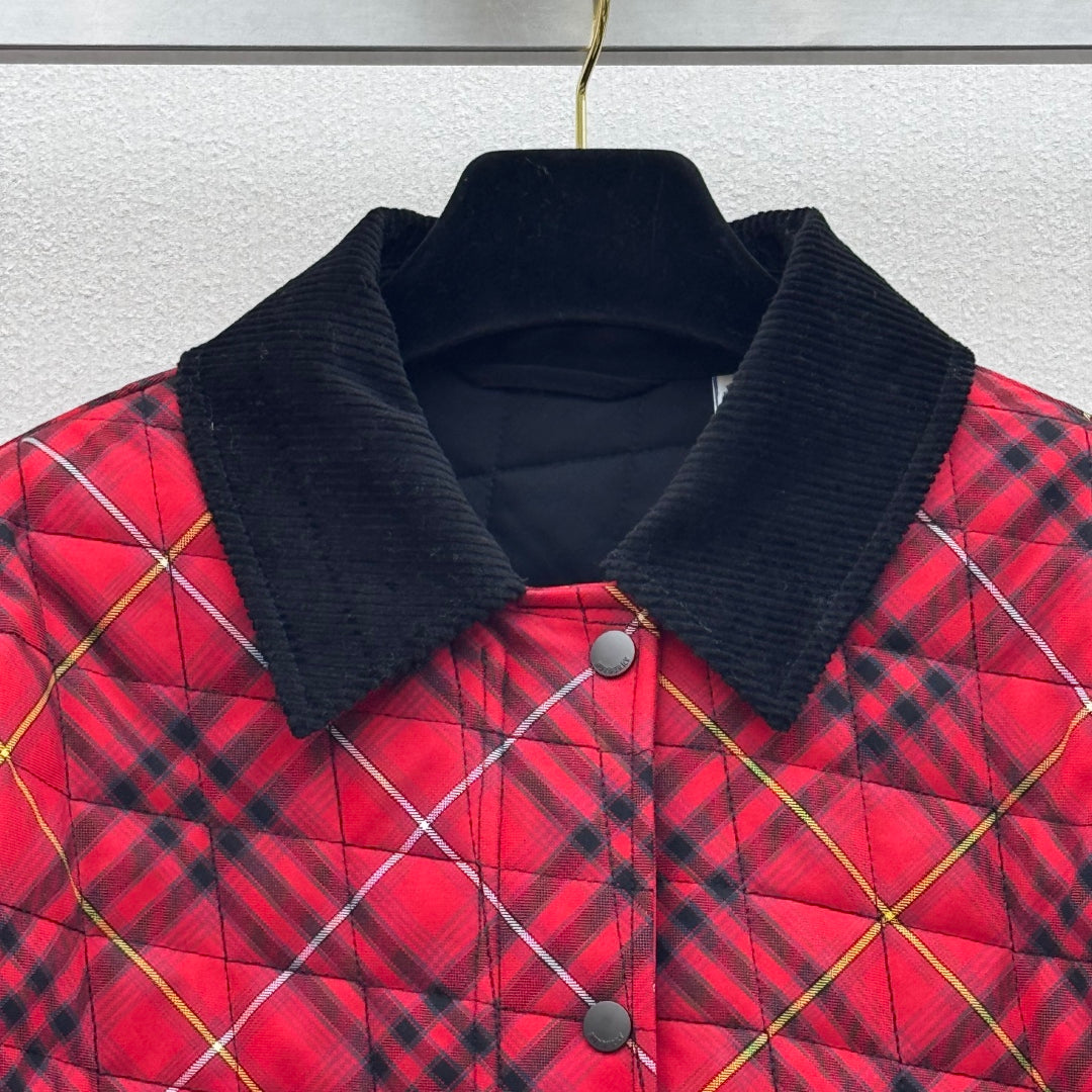 Burberry 25 Quilted Cropped Jacket Red Black Cotton